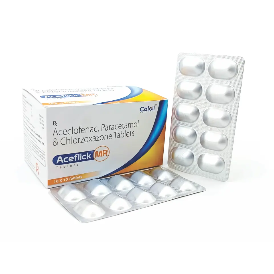 Aceflick MR Tablet is a combination medication designed to relieve muscle pain. It works by inhibiting certain chemical messengers responsible for pain, inflammation, and fever, which helps improve muscle movement and ease discomfort.