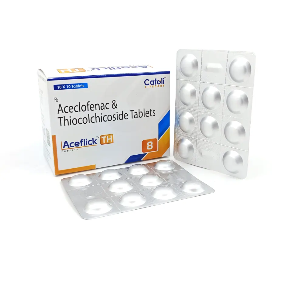 Aceflick TH8 Tablet is a combination medication designed to alleviate pain caused by muscle spasms, enhancing muscle mobility and providing relief from associated discomfort.