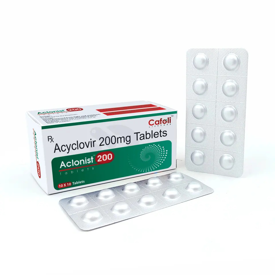 Aclonist 200 Tablet is indicated for the treatment of herpes simplex virus infections (cold sores, genital herpes), varicella-zoster virus infections (chickenpox, shingles), and for prophylaxis in immunocompromised patients. It helps relieve pain, itching, and accelerates recovery.