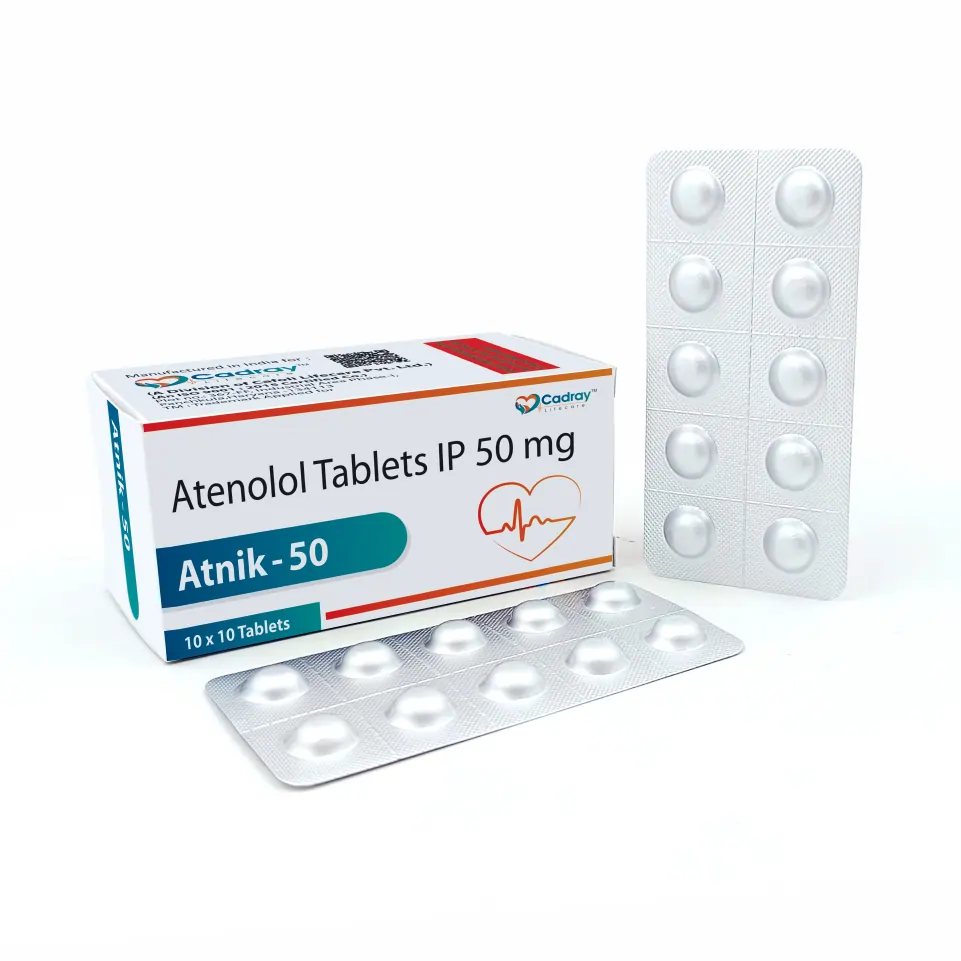 Atenolol 50 Tablet contains Atenolol, a selective beta-1 adrenergic receptor blocker that works by reducing heart rate and the force of contraction of the heart. It helps in the cardio therapy segment by lowering blood pressure, decreasing cardiac workload, and improving overall heart efficiency. This action supports better control of cardiovascular conditions and reduces the risk of complications.