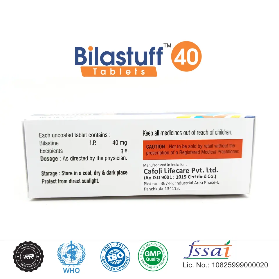 For best effectiveness, take Bilastuff 40 Tablet either one hour before or two hours after a meal, ideally at the same time each day. Follow your doctor’s guidance on dosage, as it will vary depending on your condition. The doctor will prescribe the dosage that suits your specific needs, based on factors such as age, health condition, and whether it’s in tablet or syrup form. Complete the full course as prescribed, and if symptoms persist, consult your doctor.