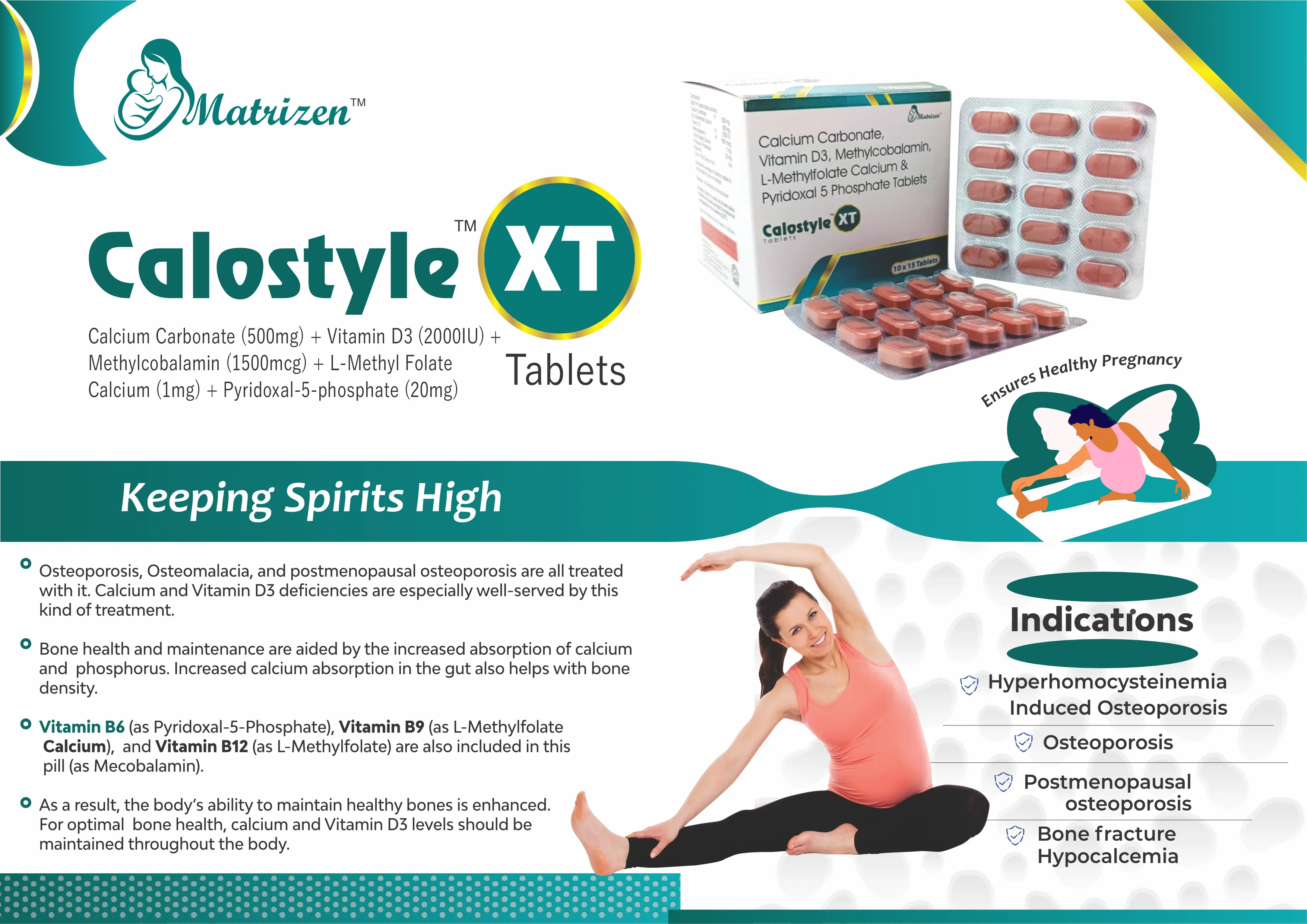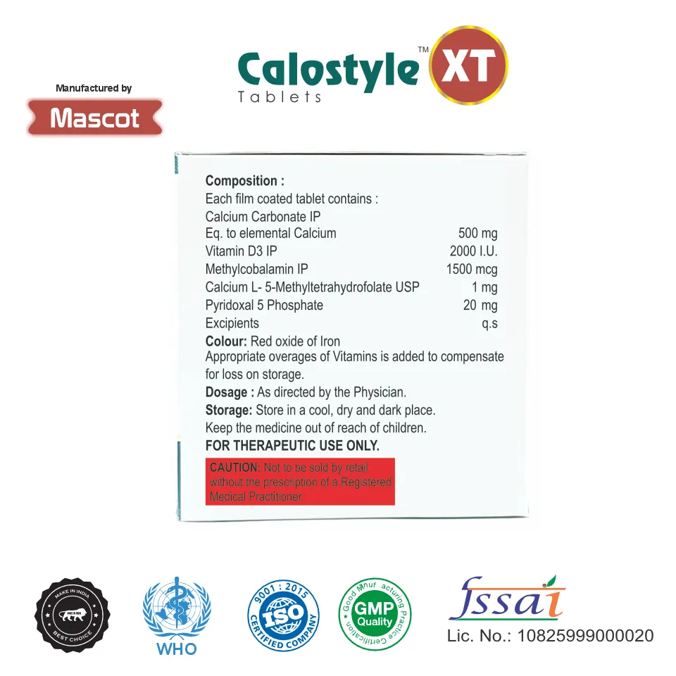 Unlike standard calcium supplements, Calostyle XT Tablet includes bioactive forms of folate and vitamin B6, which help support better nutrient utilization and neurological function, making it a differentiated product in the calcium supplement category.