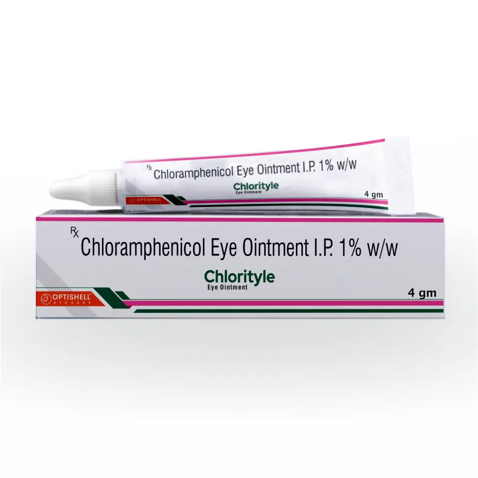 Chlorityle Eye Ointment contains Chloramphenicol 1%, a broad-spectrum antibiotic effective against Gram-positive and Gram-negative ocular pathogens. It is designed to treat superficial bacterial eye infections with localized antibacterial action, minimizing systemic exposure.