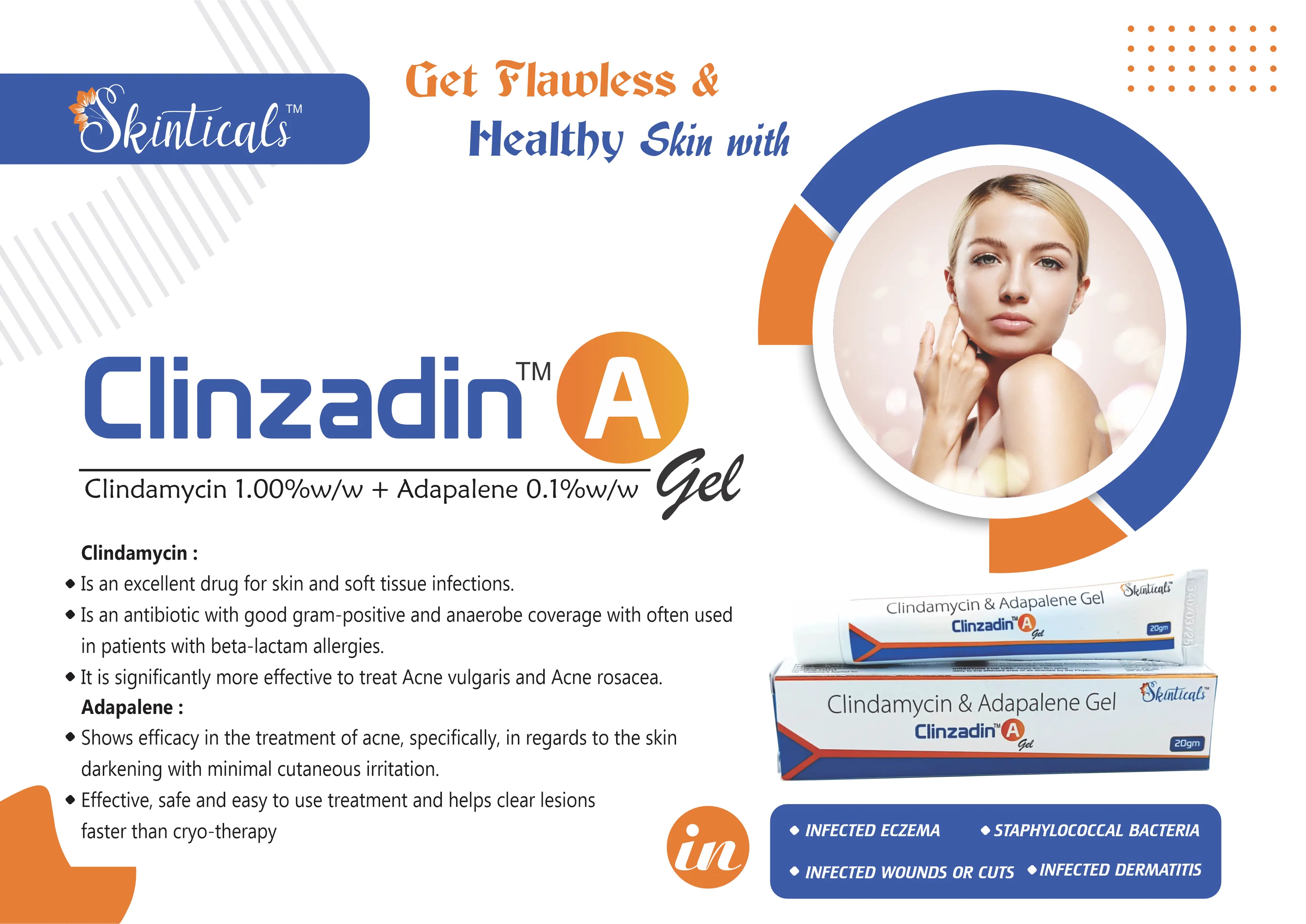 Clinzadin A Cream is designed for topical application, making it easy to incorporate into your skincare routine. By targeting the root causes of acne, it helps individuals achieve clearer skin, improve texture, and reduce the appearance of acne scars. Regular use of Clinzadin A Cream, as directed by a healthcare provider, can significantly improve the overall health and appearance of the skin.