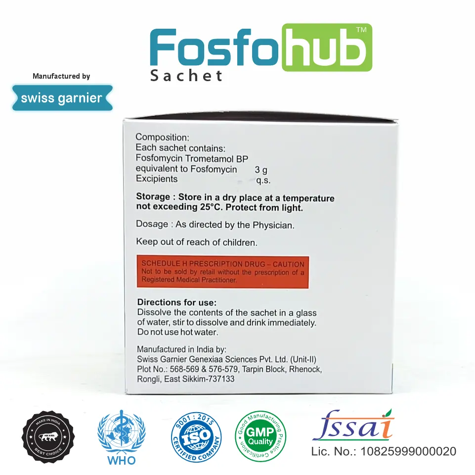The sachet format ensures ease of use, with a single dose typically sufficient to treat the infection. This makes Fosfohub a reliable and efficient choice for patients seeking quick and effective treatment for UTIs.