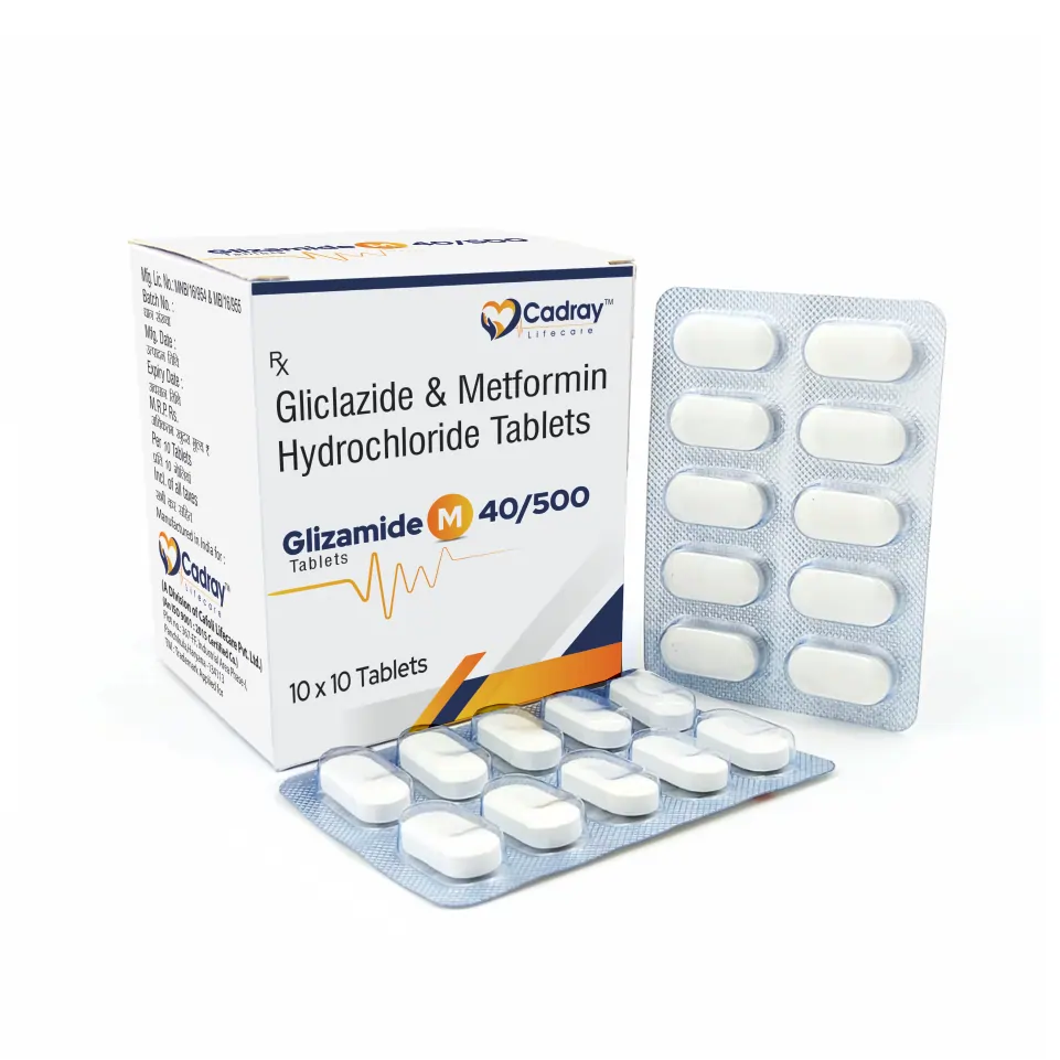 Glizamide M 40 Tablet contains Gliclazide 40mg and Metformin 500mg, offering a balanced dual-action approach for managing type-2 diabetes mellitus. It is ideal for patients who require combination therapy to achieve optimal glycemic control.