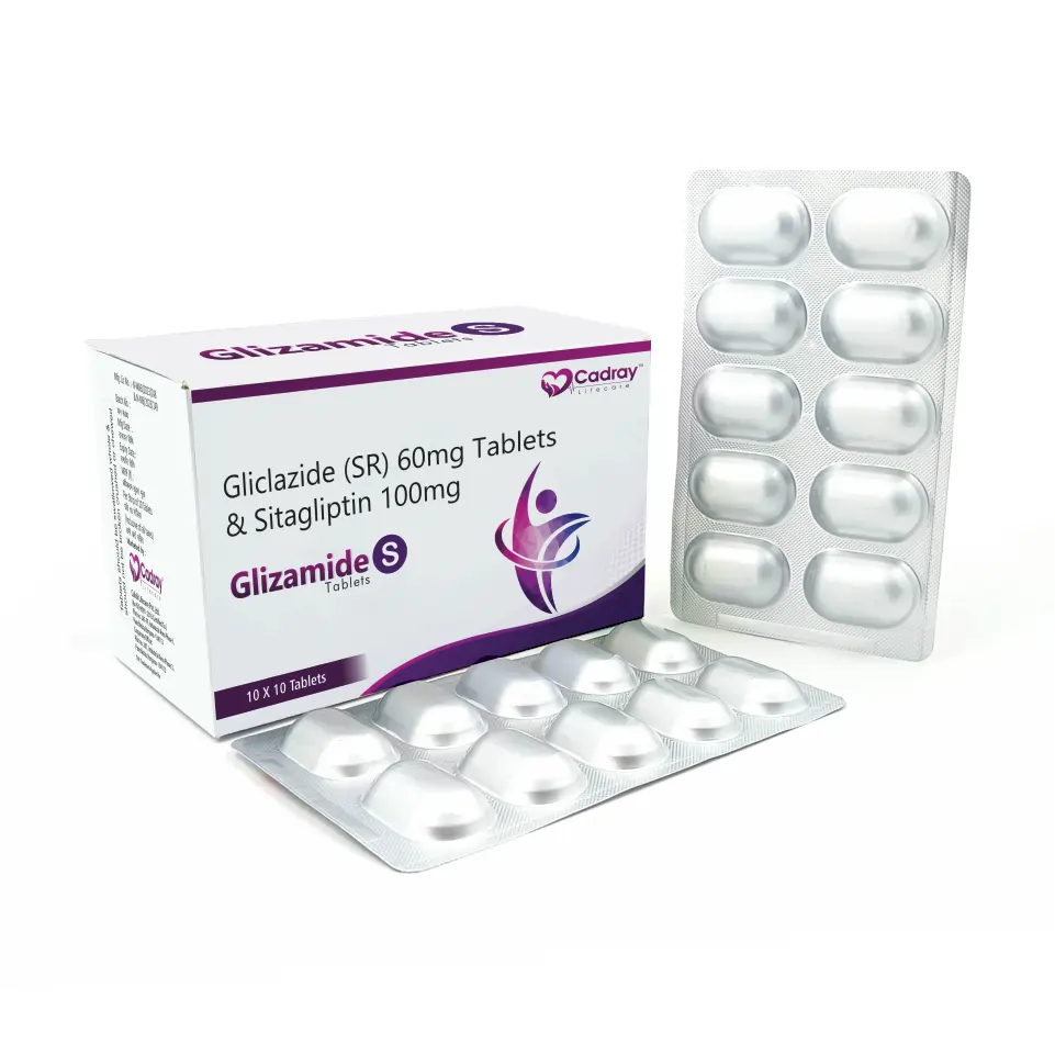 Glizamide S Tablet combines Gliclazide 60mg, a sulfonylurea that stimulates pancreatic insulin secretion, with Sitagliptin 100mg, a DPP-4 inhibitor that enhances incretin activity. This dual mechanism helps achieve optimal glycemic control in type 2 diabetes mellitus by targeting both insulin deficiency and reduced incretin effect.