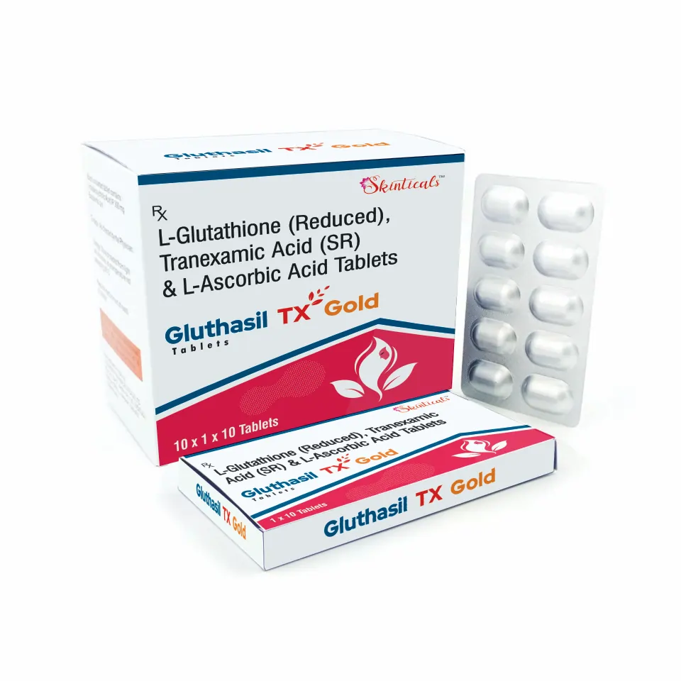 Composition : Tranexamic Acid (250mg) + L Glutathione Reduced (250mg) + L Ascorbic acid (500mg) Tablet