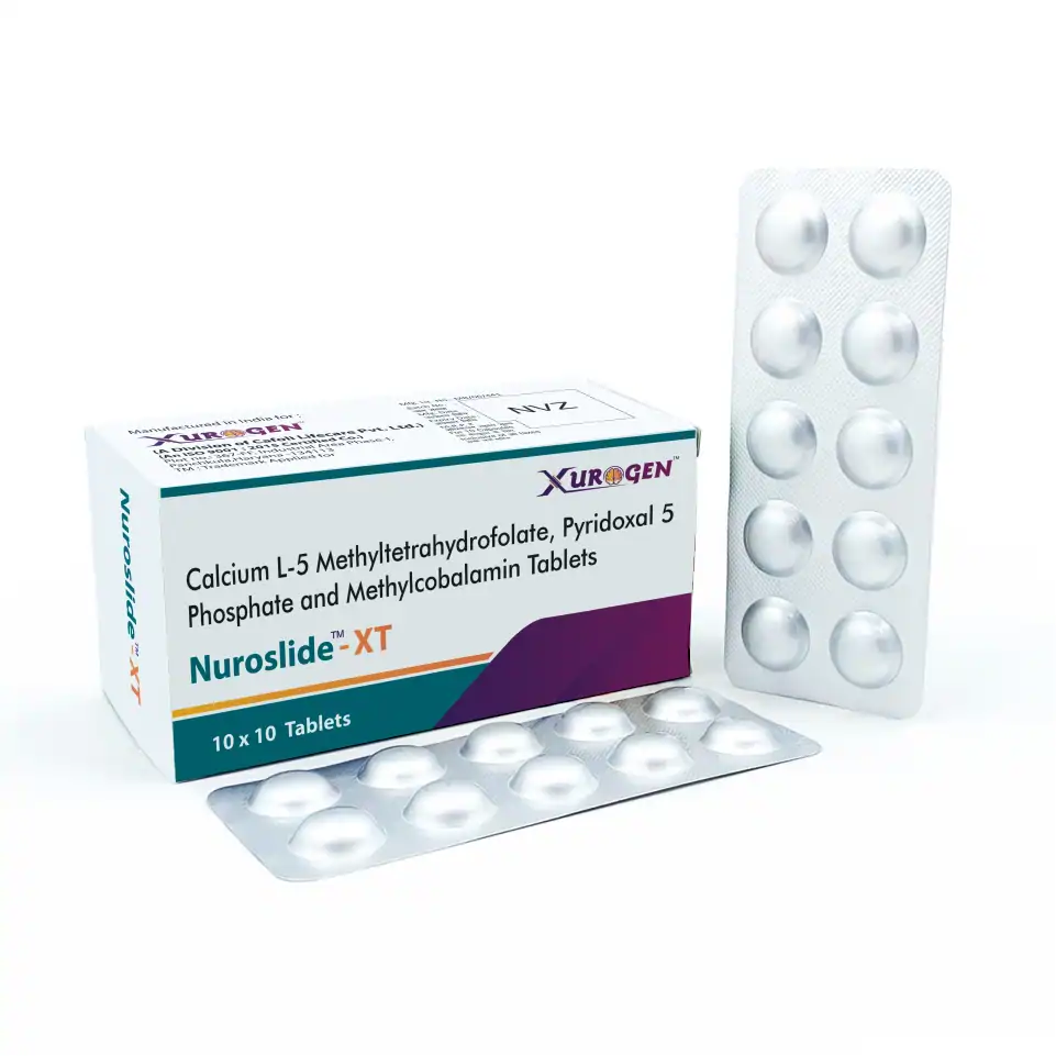 Nuroslide XT is a carefully formulated dietary supplement designed to support neurological health and enhance overall well-being. Each capsule contains a potent combination of L-Methylfolate (1 mg), Methylcobalamin (1500 mcg), and Pyridoxal 5 Phosphate (0.5 mg). This unique blend of active ingredients is specifically designed to address deficiencies in essential B vitamins, which play a critical role in maintaining optimal brain function and overall health.