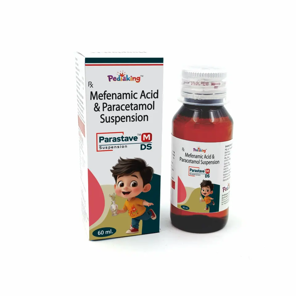 Parastave M DS Syrup contains Mefenamic Acid 100mg + Paracetamol 250mg, a combination used for relieving mild to moderate pain, inflammation, and fever. It is effective in conditions such as headaches, menstrual pain, musculoskeletal discomfort, and post-operative pain.