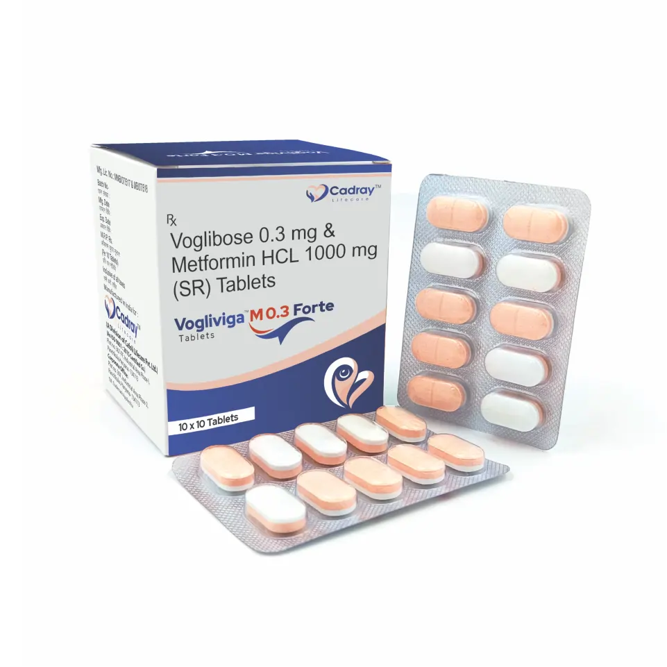 Metformin 1000mg + Voglibose 0.3mg tablet is a dual-action anti-diabetic formulation used for the effective management of type 2 diabetes mellitus and postprandial hyperglycemia.