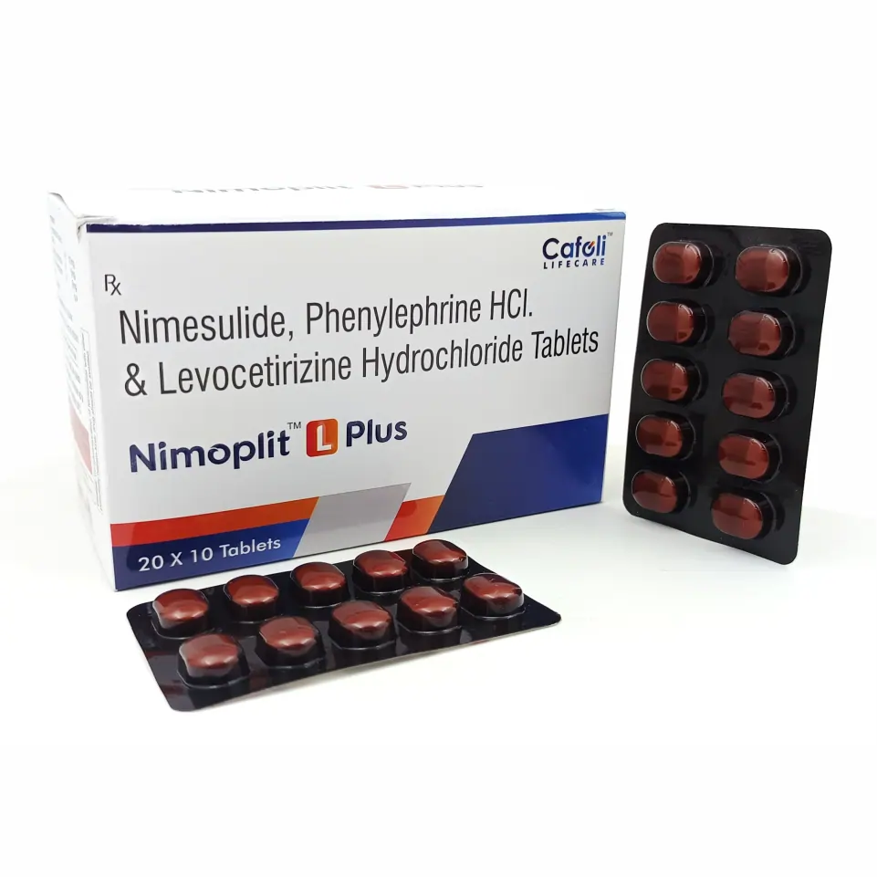 Nimoplit L Plus Tablet is a powerful combination medicine designed to address symptoms associated with cold, allergies, and mild to moderate pain and inflammation. Each tablet contains three potent ingredients — Nimesulide, Phenylephrine HCl, and Levocetirizine Dihydrochloride — working synergistically to provide fast and effective relief.