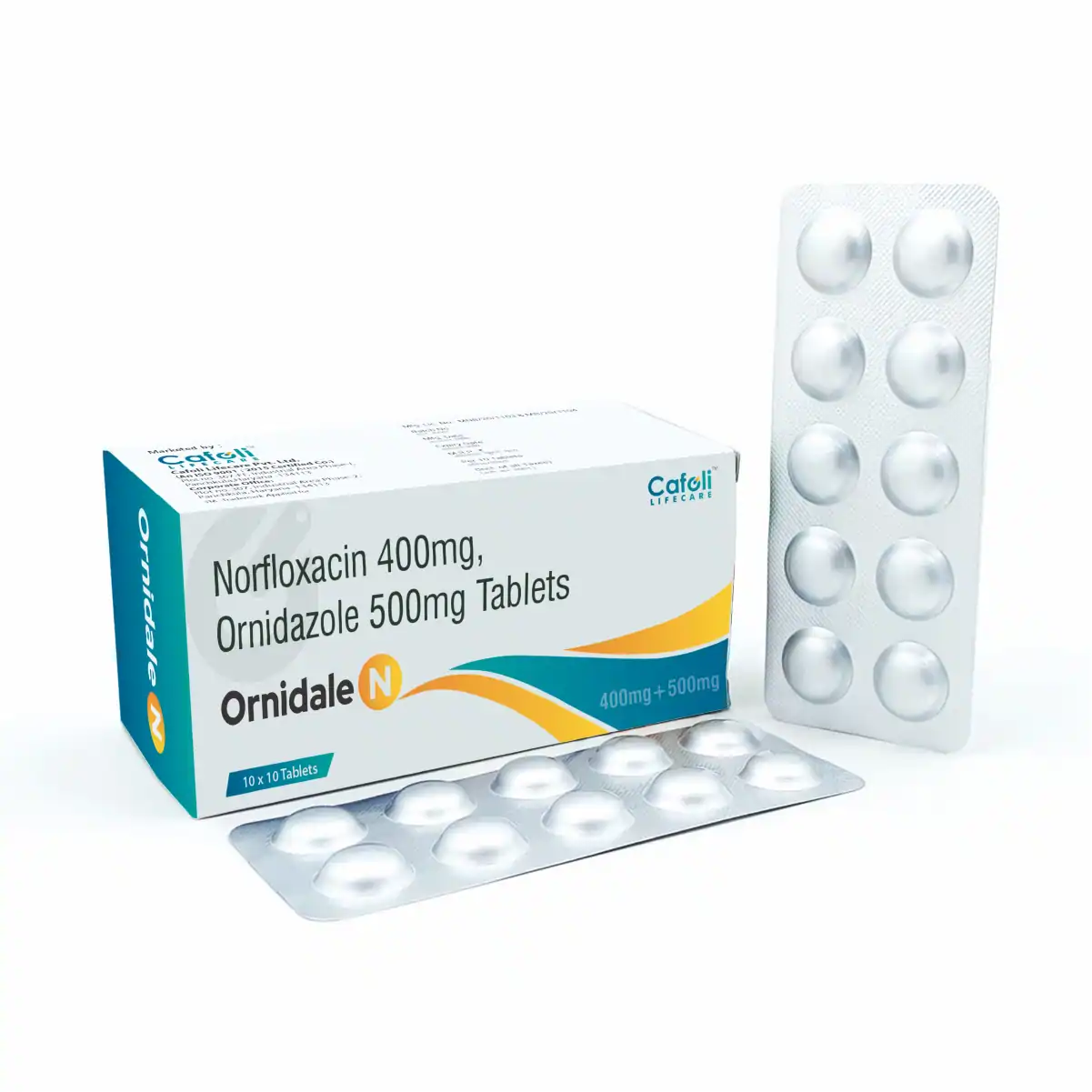 Ornidale N Tablet contains Ornidazole 500 mg and Norfloxacin 400 mg, a dual-action antimicrobial combination specifically designed for comprehensive management of gastrointestinal infections. Ornidazole targets anaerobic bacteria and protozoa, while Norfloxacin provides broad-spectrum antibacterial activity, ensuring effective eradication of intestinal pathogens.