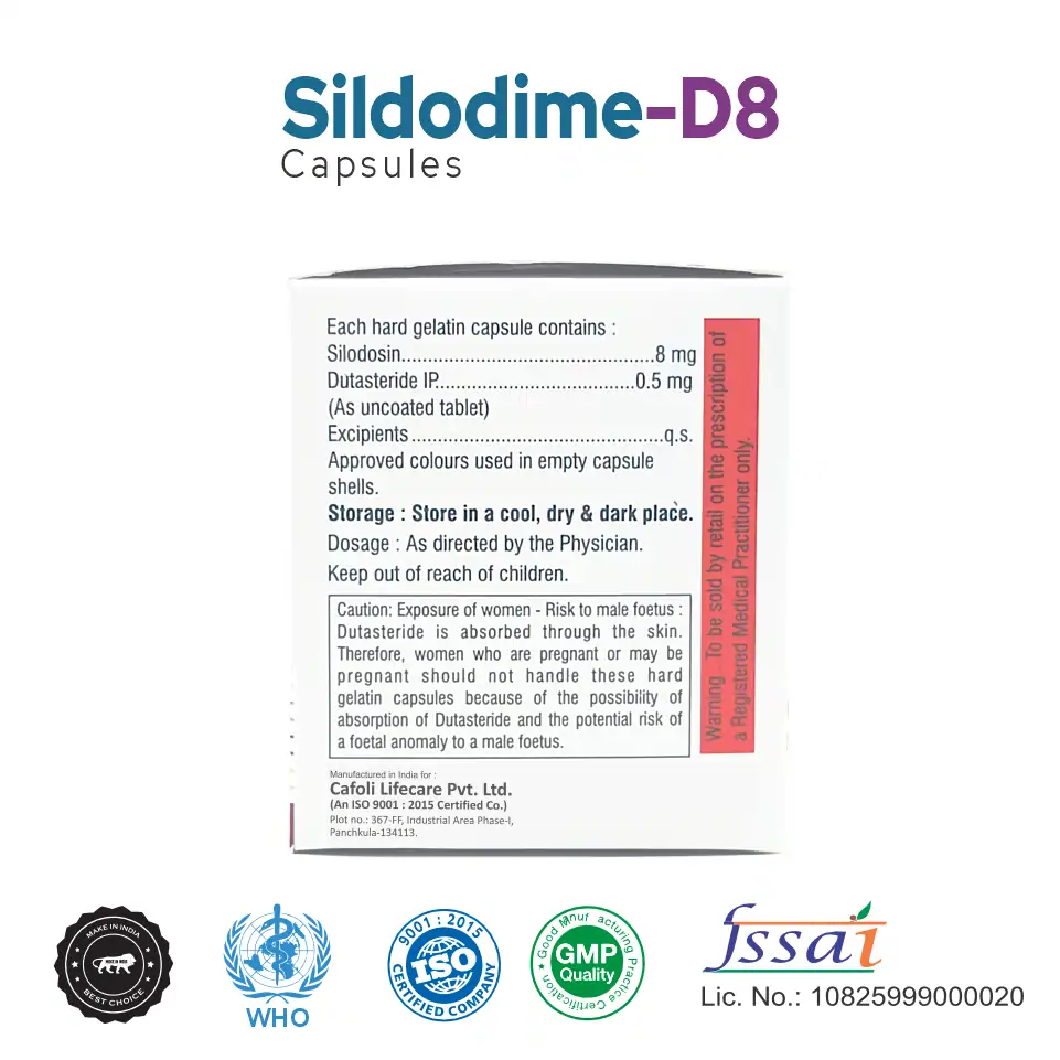 Composition : Silodosin (8mg) + Dutasteride (0.5mg) Capsule