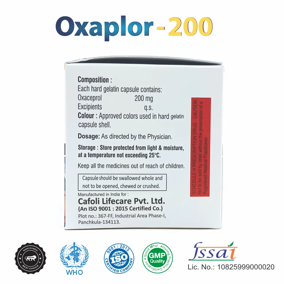 Oxaceprol 200mg Capsule is an anti-inflammatory and analgesic medication commonly used in the treatment of osteoarthritis and other degenerative joint disorders. It helps reduce pain, swelling, and joint stiffness.
