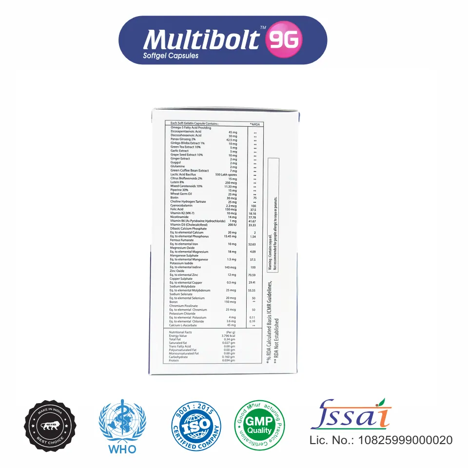 This multivitamin, multimineral, antioxidant, omega fatty acid and probiotic softgel is a comprehensive nutritional formulation designed to support daily energy needs, immune function, metabolic balance, and overall well-being.