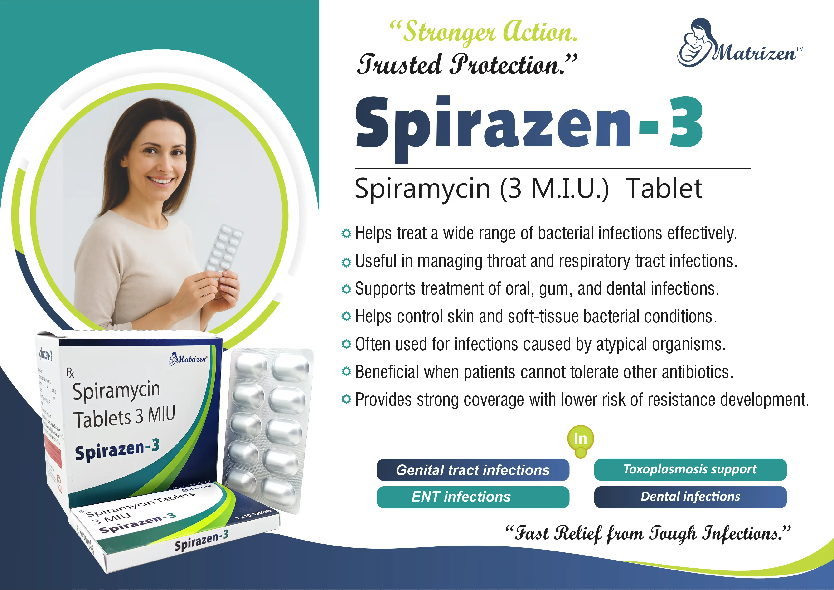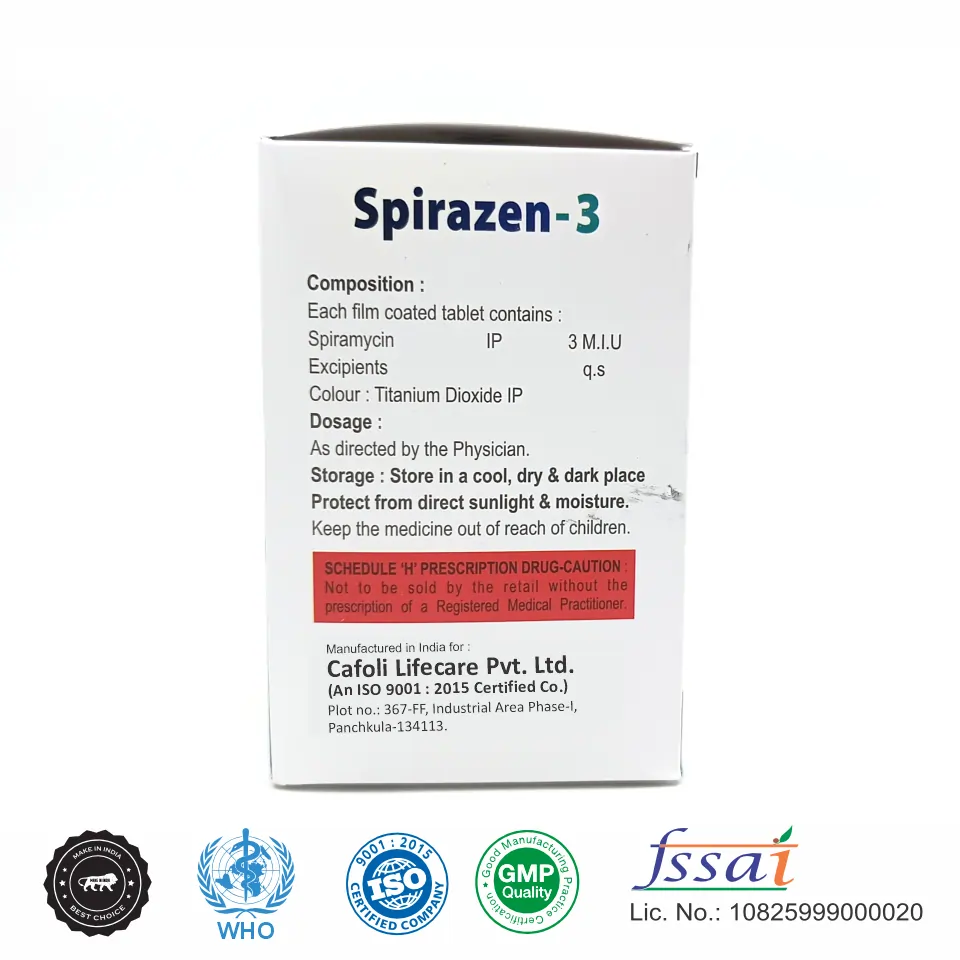 Adding Spirazen 3 Tablet to your product portfolio strengthens your anti-infective and antibiotic segment, opening opportunities in hospital procurement, pharmacy distribution, export markets, institutional supply, and third-party manufacturing. Its proven clinical effectiveness makes it a dependable and commercially valuable product for pharmaceutical distributors.