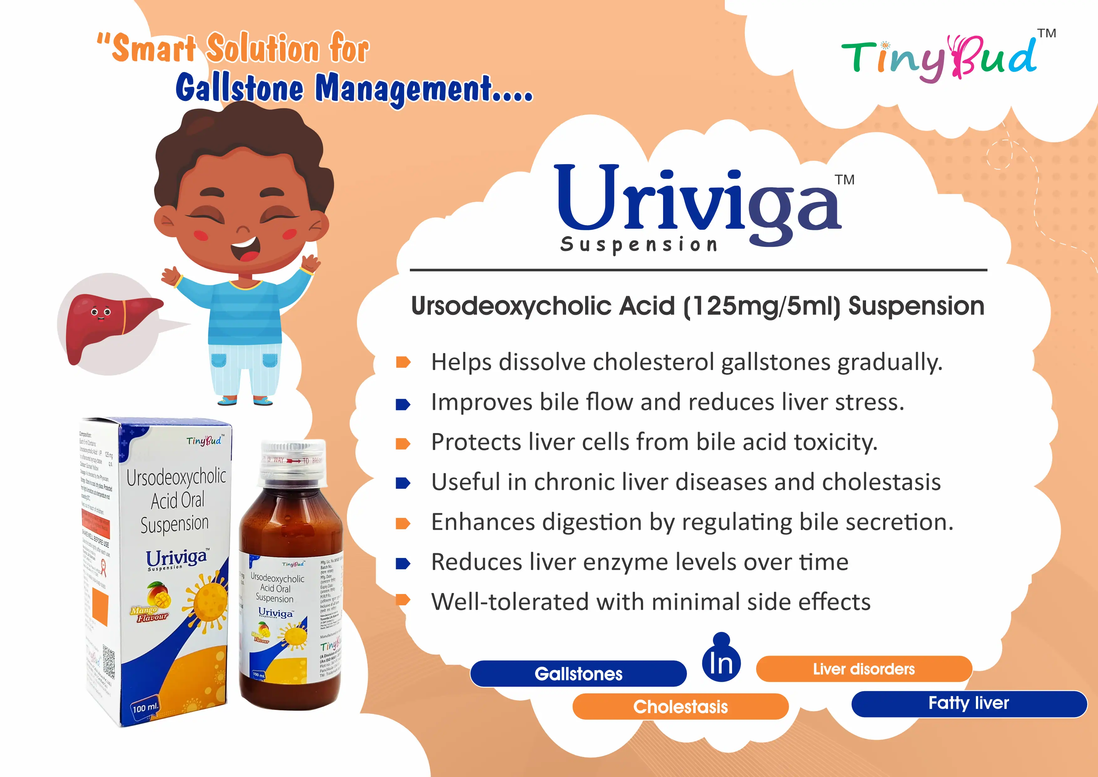 Composition : Ursodeoxycholic Acid (125mg/5ml)