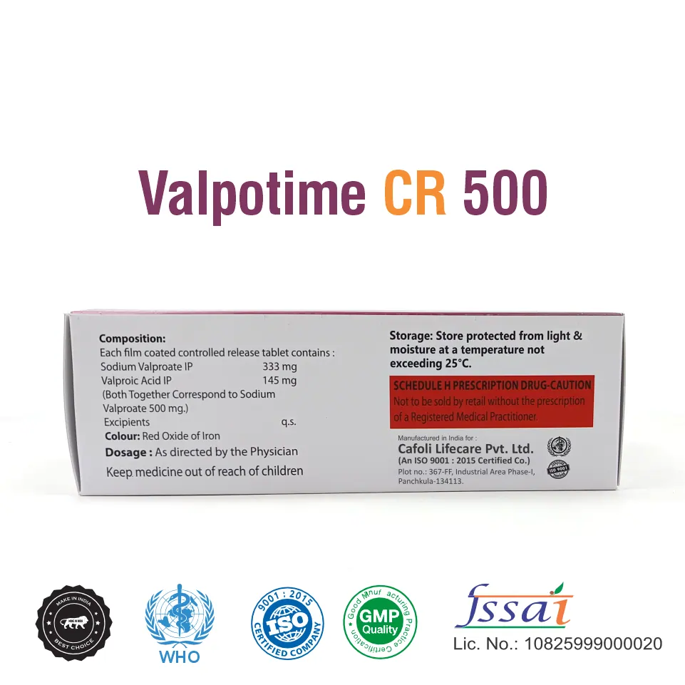 Valpotime CR 500 Tablet is indicated for the management of epilepsy, including generalized and partial seizures, bipolar disorder, and migraine prophylaxis, as prescribed by a healthcare professional.