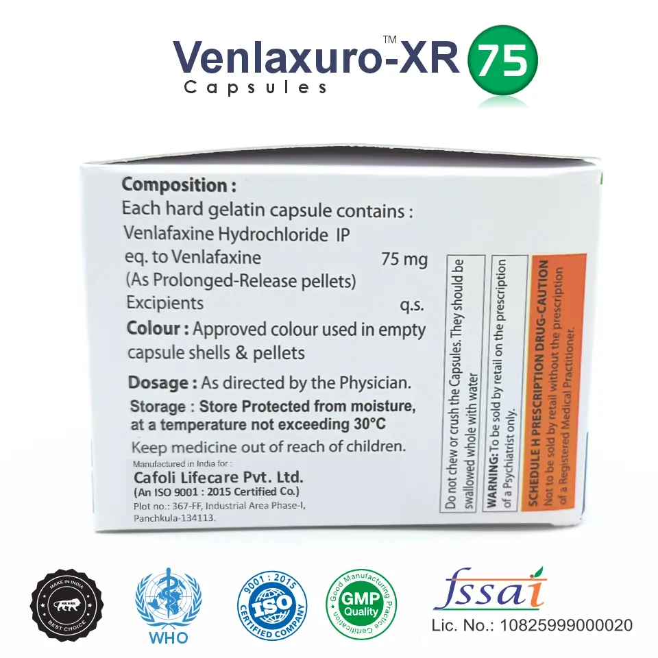 At Cafoli Lifecare, we are committed to providing our B2B pharma partners with high-quality, profitable products. Our Venlaxuro 75 Capsule is manufactured under strict quality controls and comes with a competitive pricing structure. By partnering with us, you gain access to a reliable supply of this essential medication and the comprehensive support needed to succeed in the wholesale pharma market. Choose this product to build a strong and reputable business in the mental health segment.