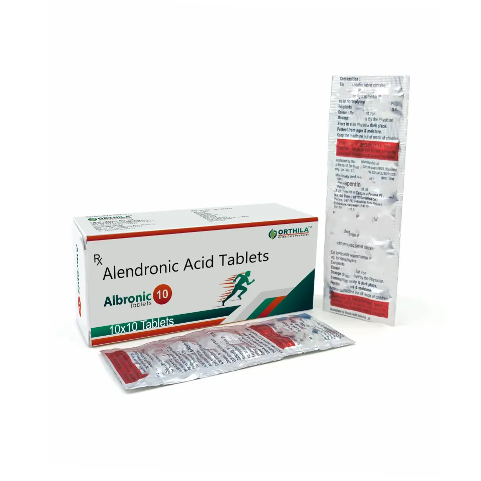 Albronic 10 Tablet belongs to the orthopedic and bone health segment, making it a commonly recommended product by endocrinologists, orthopedists, and general physicians for bone loss prevention and management.