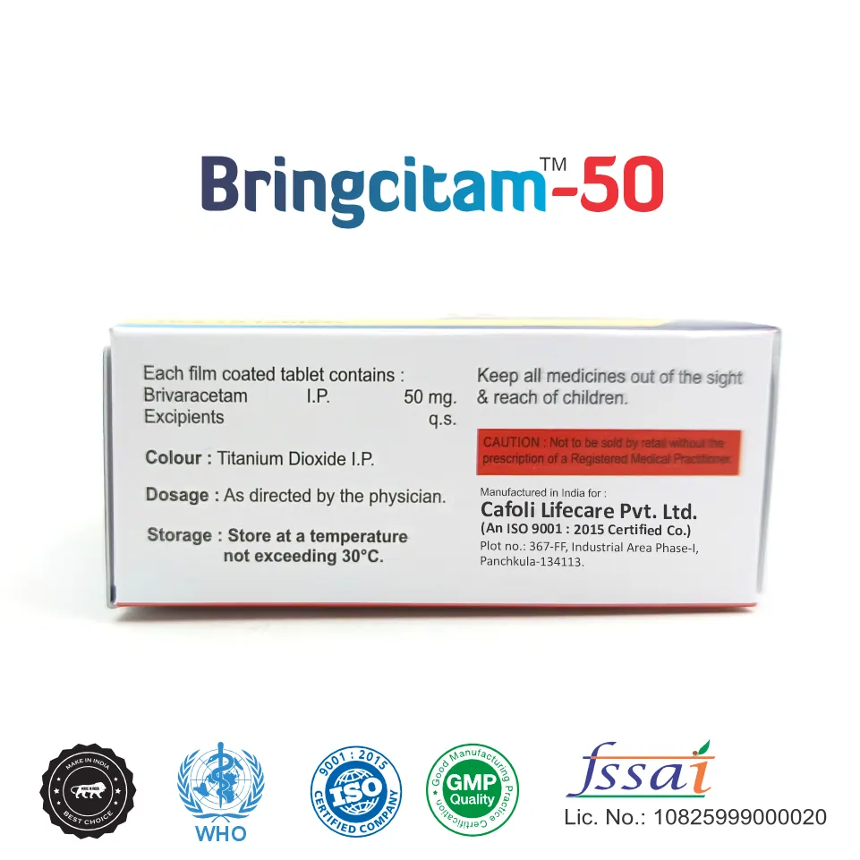 This drug is prescribed primarily for patients with partial-onset seizures, either as a stand-alone therapy (monotherapy) or as an adjunctive therapy with other antiepileptic drugs. By inhibiting excessive electrical signals in the brain, Bringcetam 50 helps to reduce the frequency and intensity of seizures, providing significant relief for patients suffering from epilepsy. Its action on SV2A ensures it specifically targets the areas of the brain associated with seizure activity, providing a focused effect.