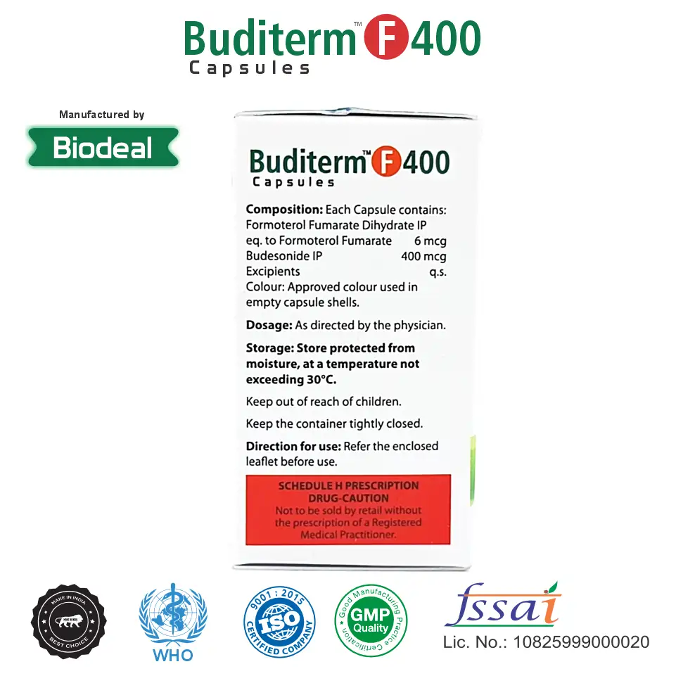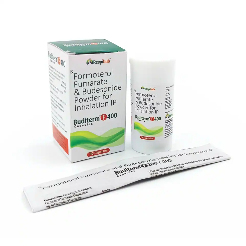 Budesonide 400mcg + Formoterol 6mcg rotacap is a combination inhalation therapy designed for the effective management of asthma and COPD, helping maintain airway function and reduce respiratory distress.