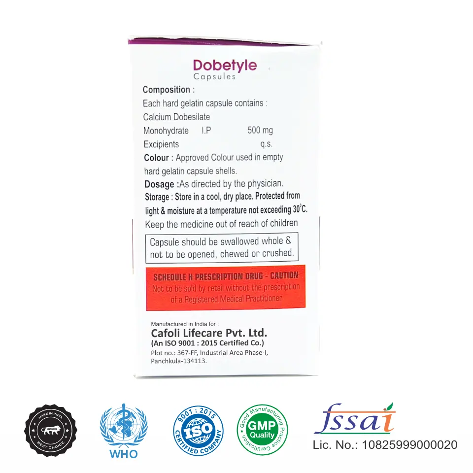 Dobetyle Capsule is indicated for the management of chronic venous insufficiency, diabetic retinopathy, hemorrhoids, and microvascular disorders associated with impaired capillary function, as prescribed by a healthcare professional.