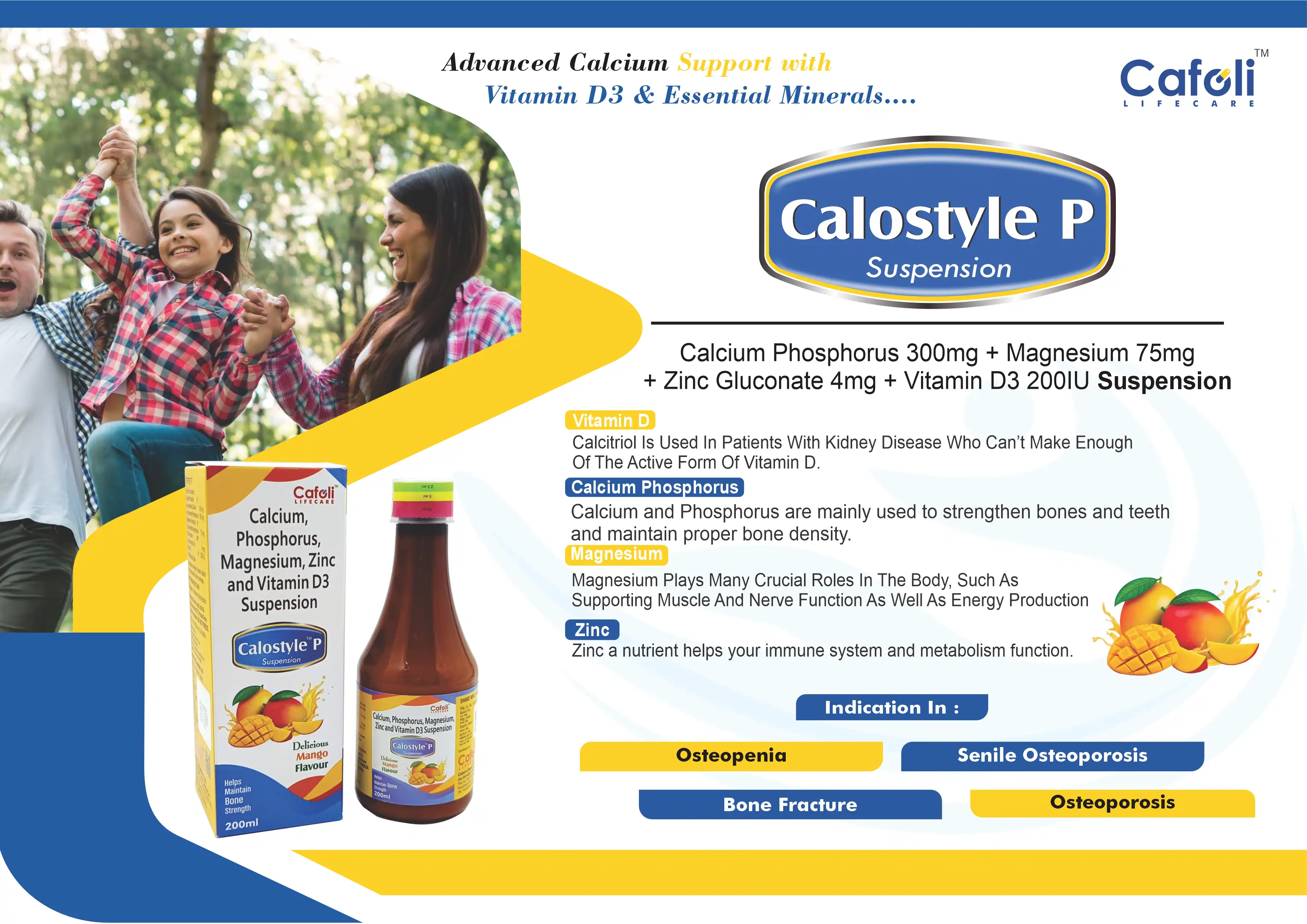 Calostyle P Suspension is particularly beneficial for individuals at risk of calcium and vitamin D deficiency, including children, adolescents, pregnant and lactating women, and the elderly. It is also suitable for those with dietary restrictions or those who may not get enough of these essential nutrients from their diet alone. The pleasant taste and easy-to-administer liquid form make it an ideal choice for both children and adults.
