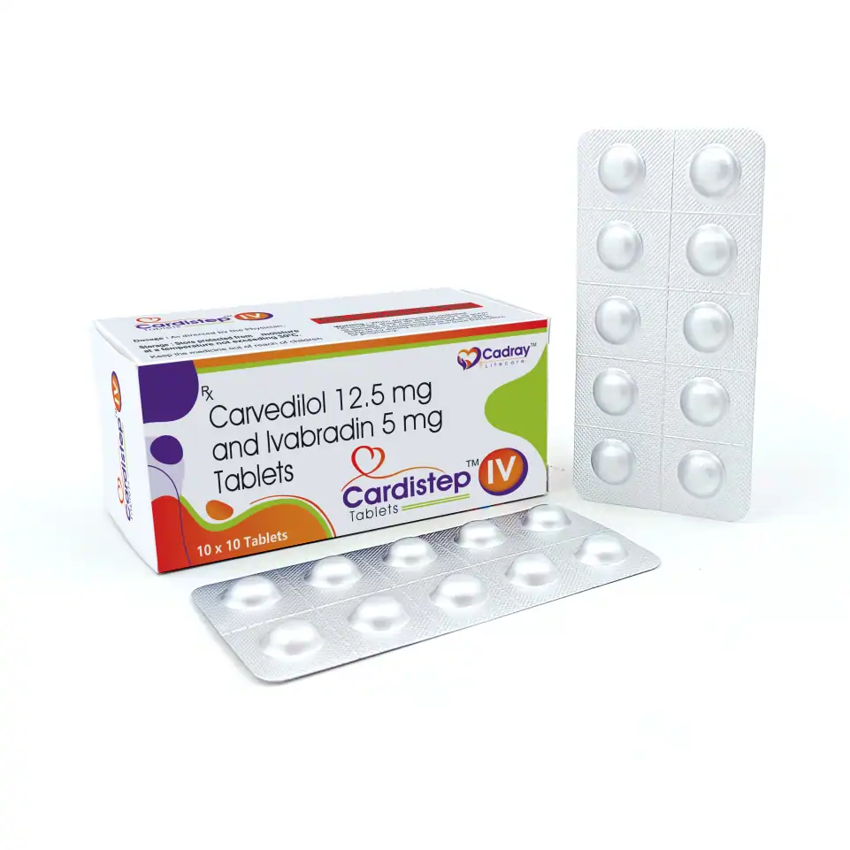 Cardistep I Tablet is formulated with Carvedilol 12.5mg and Ivabradine 5mg, a synergistic cardiology combination that helps in managing chronic heart failure, hypertension, and stable angina. This combination works by reducing heart rate, improving cardiac output, and lowering blood pressure, thereby reducing cardiac workload.