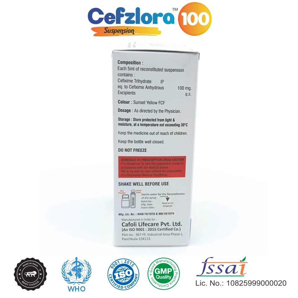 Cefzlora 100 Dry Syrup should be used exactly as prescribed, and the full course must be completed to prevent antibiotic resistance. Shake well before each dose and use the provided measuring device. Inform the doctor if the patient has a history of allergy to cephalosporins or penicillins.