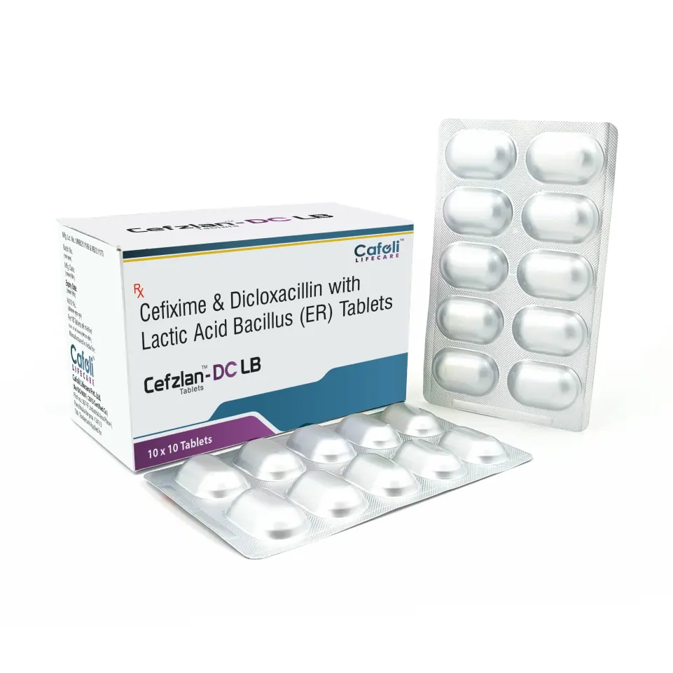 Composition : Cefixime (200mg) + Dicloxacillin (500mg) + Lactic Acid Bacillus (90Million Spores) Tablet