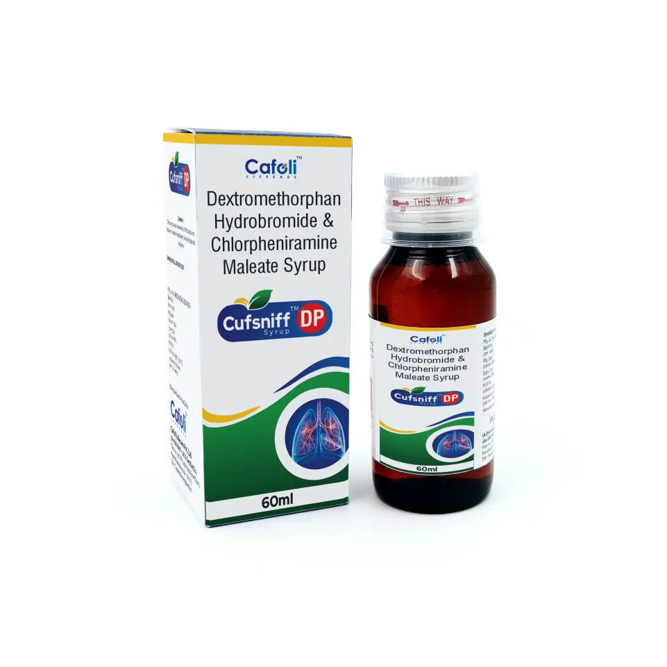 Chlorpheniramine Maleate 2mg + Dextromethorphan 5mg syrup is a combination antitussive and antihistaminic formulation used for the effective management of cough, cold, and allergic respiratory symptoms.