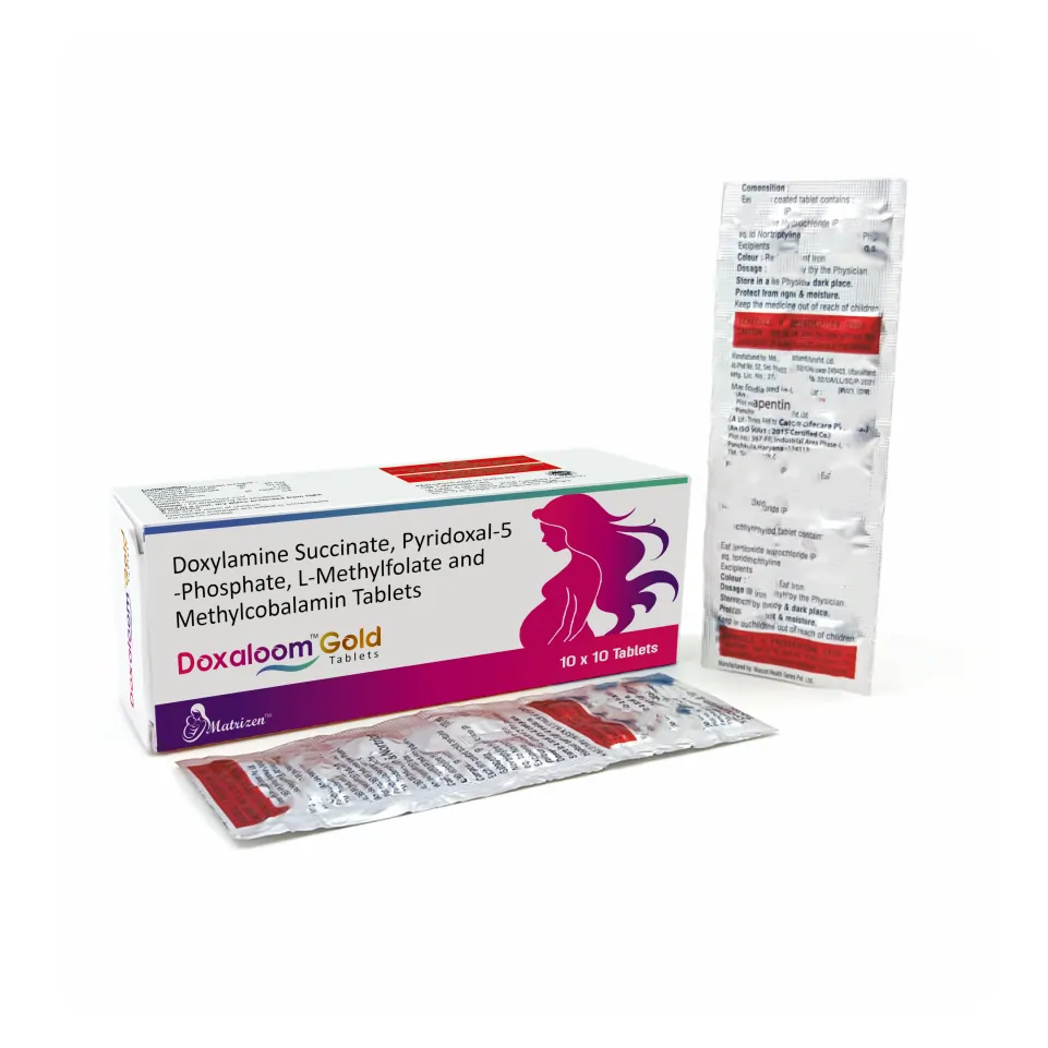 Doxaloom Gold Tablet is a comprehensive nutritional and therapeutic supplement formulated to support maternal health, prevent nutritional deficiencies, and manage pregnancy-related symptoms such as nausea and vomiting. This advanced combination of active ingredients plays a crucial role in improving maternal well-being and fetal development.