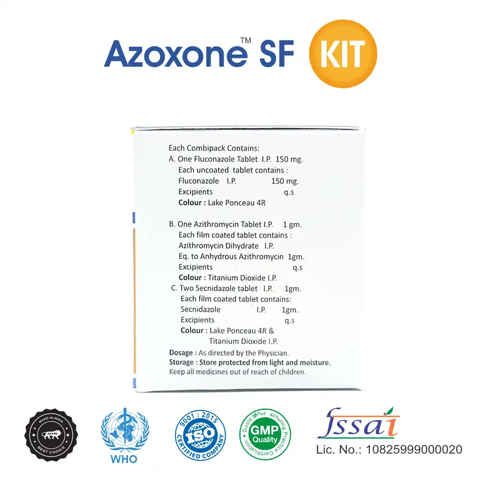 Azithromycin provides potent antibacterial action, fluconazole offers systemic antifungal coverage, and secnidazole ensures long-acting antiprotozoal and anaerobic activity, delivering comprehensive infection control.