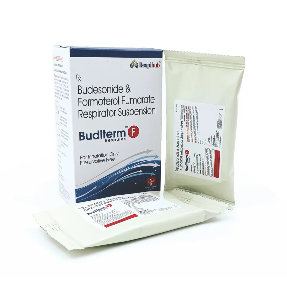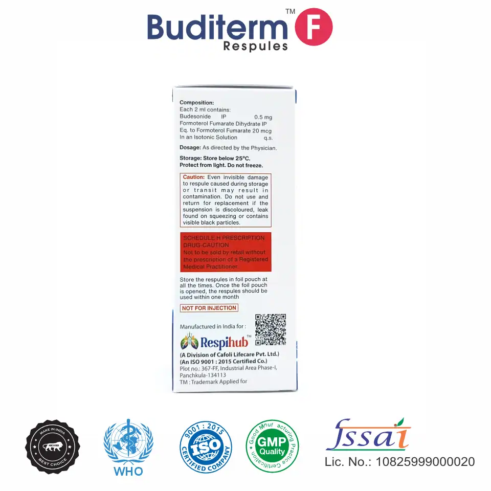 Buditerm F Respule is indicated for the maintenance treatment of asthma, chronic bronchitis, and COPD. It helps in preventing bronchospasm, controlling inflammation, and improving lung function, as prescribed by a healthcare professional.