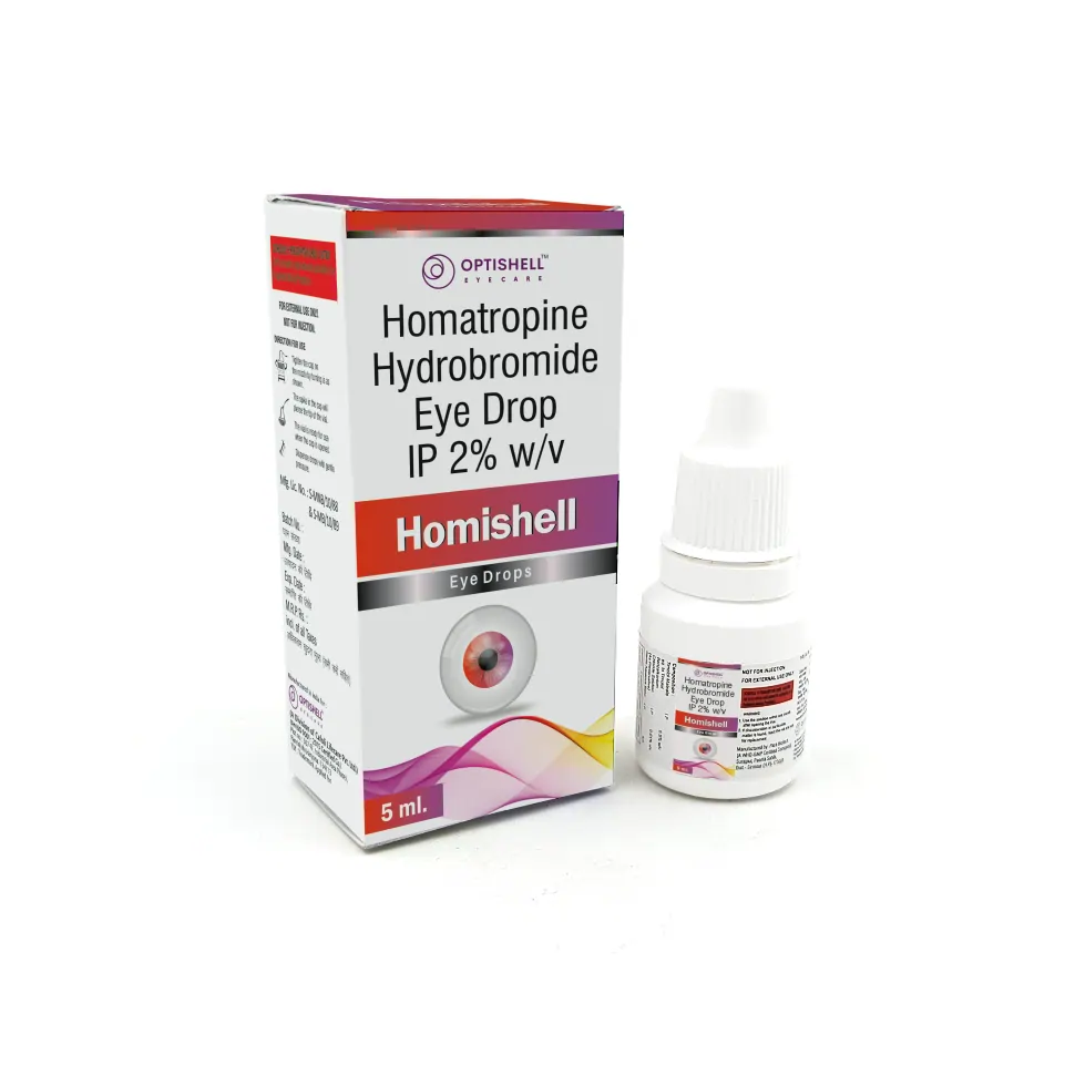 Homishell Eye Drop is indicated for pupil dilation during eye examinations and temporary relief of pain in anterior uveitis or iritis. It facilitates accurate assessment of the retina and other intraocular structures while providing symptomatic relief from ciliary spasm and discomfort.