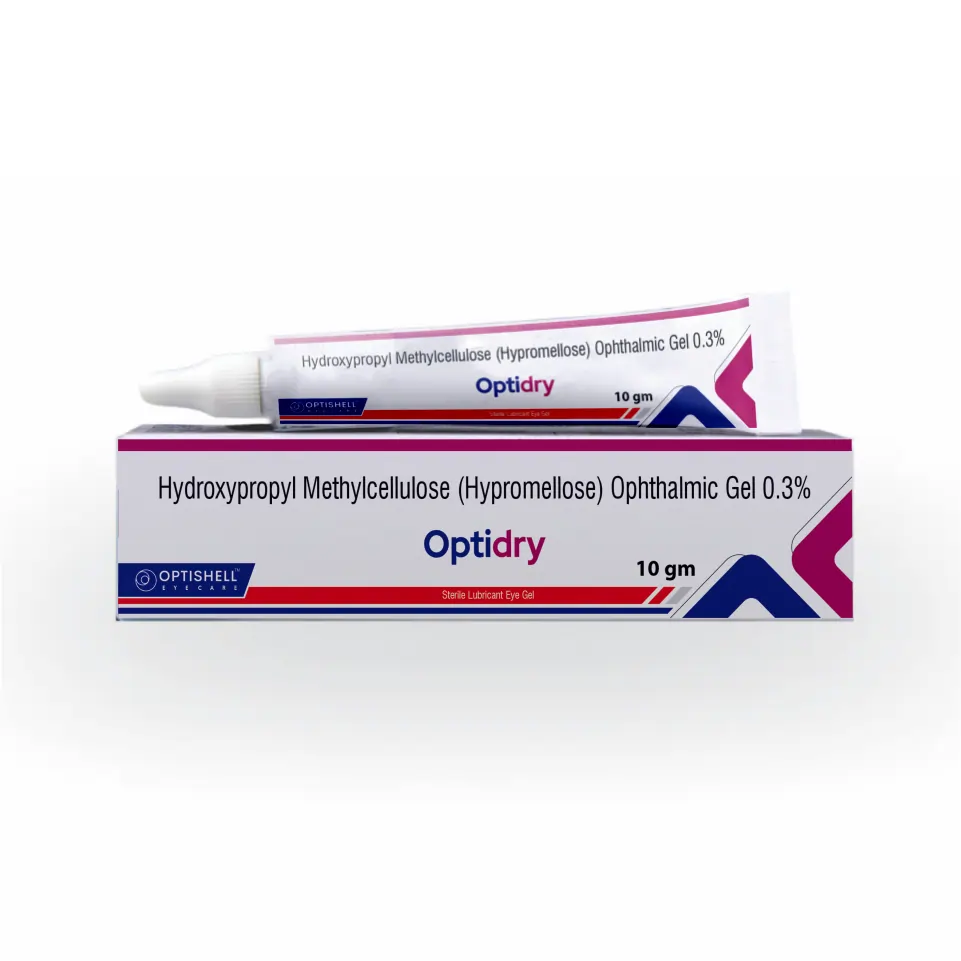 Optidry Eye Ointment contains Hydroxypropyl Methylcellulose 0.3% w/v, a lubricating ophthalmic ointment used for dry eye syndrome, ocular irritation, and surface lubrication.