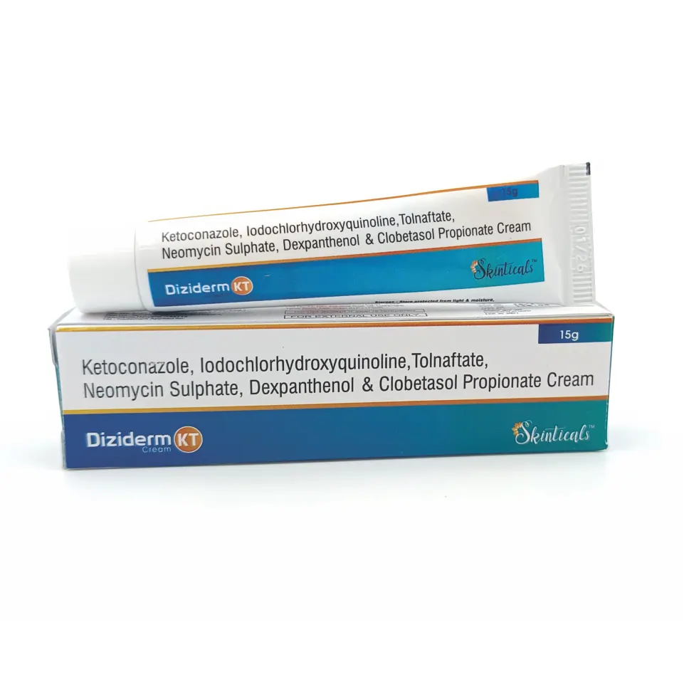 Composition : Ketoconazole (2.0% w/w) + Clobetasol Propionate (0.05% w/w) + Neomycin (0.10% w/w) + Tolnaflate (1.0% w/w) + Iodochlorhydroxy Quinoline (1.0% w/w) Cream
