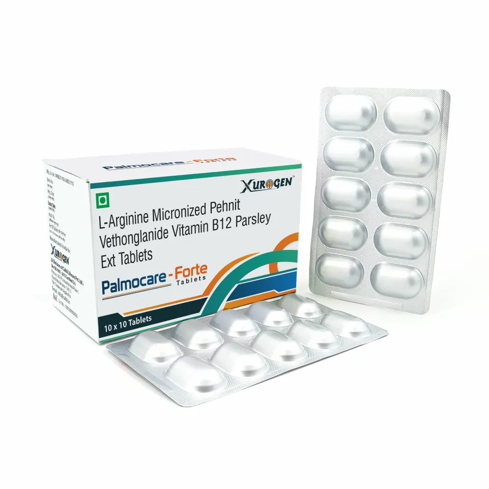 Palmocare Forte Tablet is a multi-ingredient nerve support formulation containing L-Arginine (500 mg), Micronized Palmitoylethanolamide (300 mg), Vitamin B12 (2.4 mcg), and Parsley Extract (50 mg), developed to help manage neuropathic pain, nerve inflammation, and chronic discomfort.