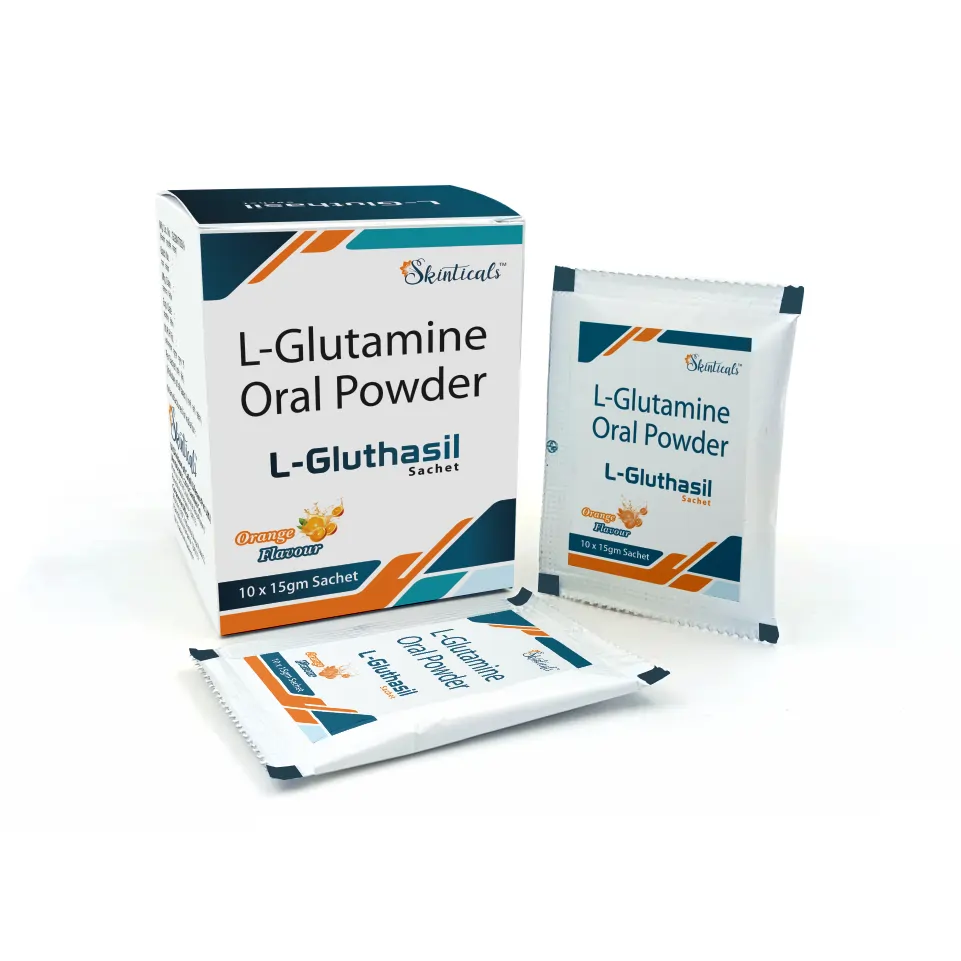L-Gluthasil Sachet contains L-Glutamine 10 mg, a key amino acid supplement that supports gut mucosal integrity, intestinal function, and immune system health. It is particularly helpful in maintaining digestive balance and overall nutrient absorption.