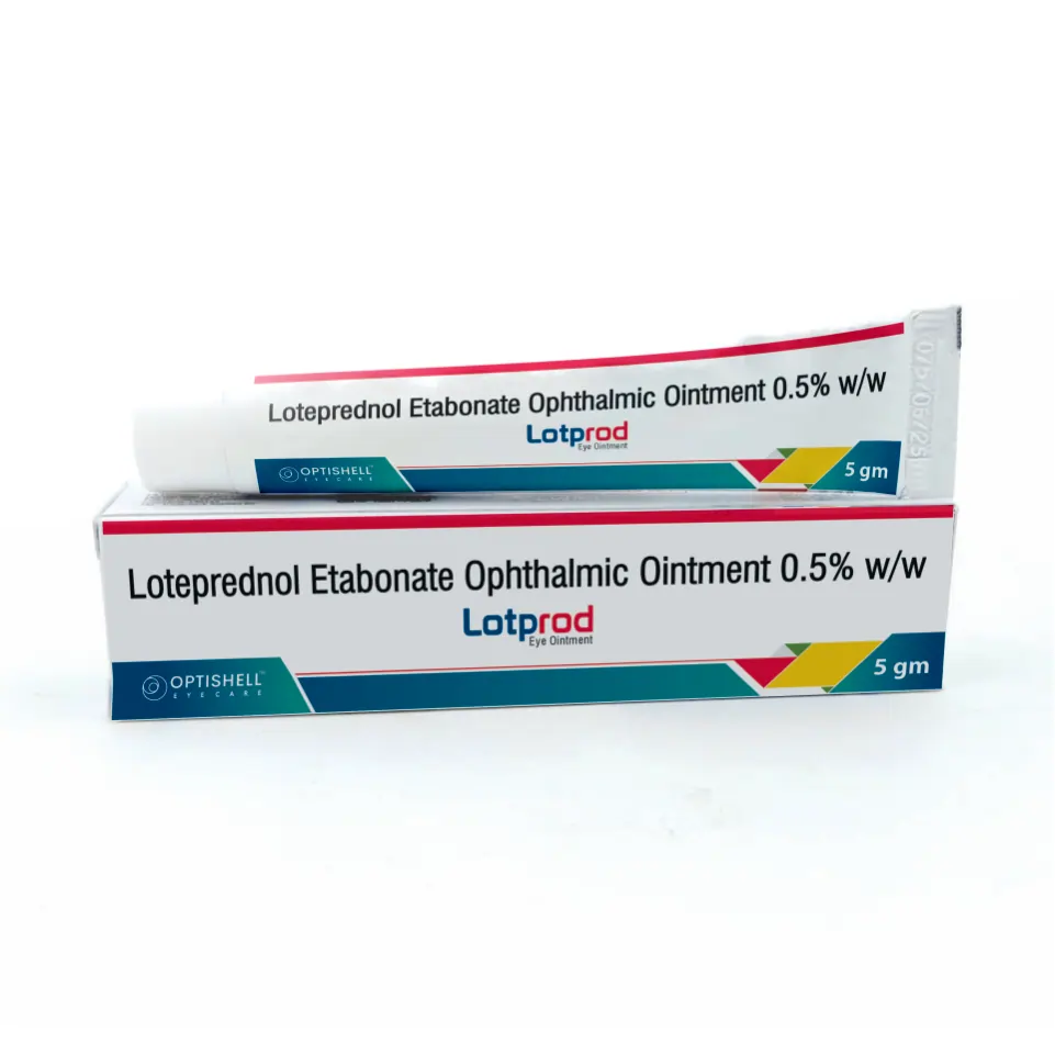 Lotprod Eye Ointment contains Loteprednol Etabonate 0.5% w/v, a steroid ophthalmic ointment used for eye inflammation, allergic conjunctivitis, and ocular irritation.