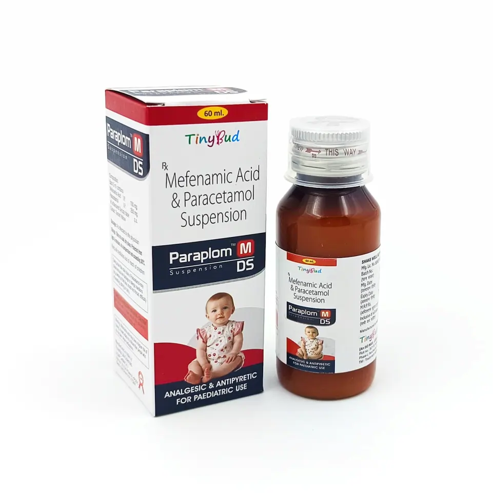 Paraplom M DS Suspension is a synergistic formulation designed to alleviate moderate pain and reduce fever. Each 5 mL of this suspension contains 100 mg of mefenamic acid and 250 mg of paracetamol, combining the analgesic and anti-inflammatory properties of mefenamic acid with the antipyretic effects of paracetamol. This makes it particularly effective for managing conditions such as headaches, toothaches, menstrual cramps, and mild musculoskeletal pain, as well as for reducing fever associated with infections.