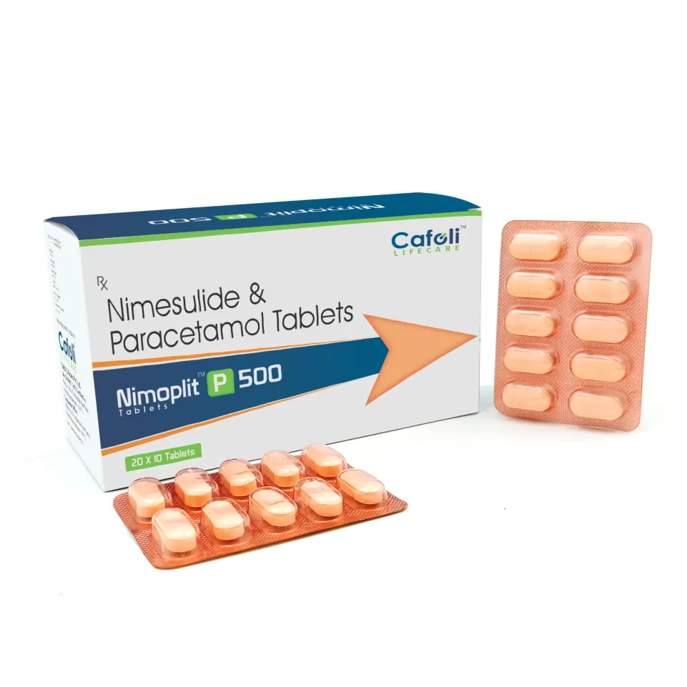 Nimoplit P 500 Tablet contains Nimesulide 100mg + Paracetamol 500mg, a widely used combination for effective relief from pain, inflammation, and fever. It is commonly prescribed in conditions such as musculoskeletal pain, dental pain, post-operative discomfort, and acute febrile illnesses.