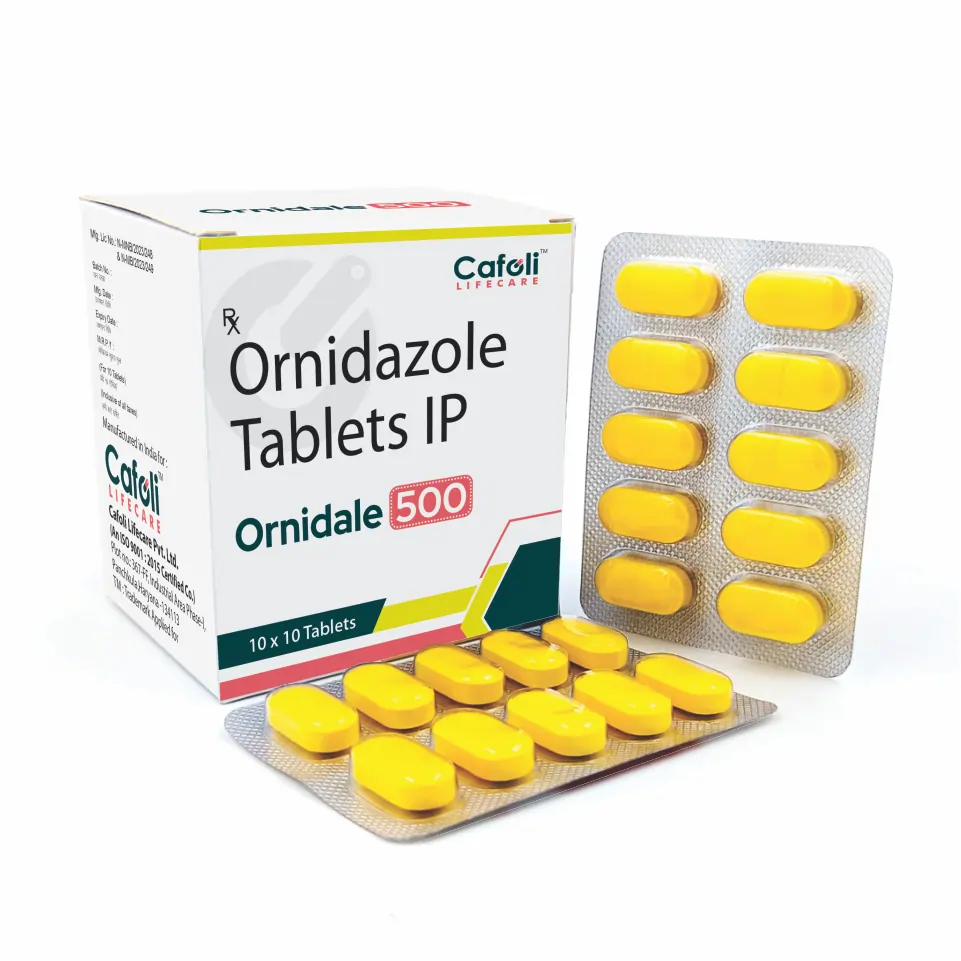 Ornidale Tablet, containing the active ingredient Ornidazole (500mg), is a powerful and versatile nitroimidazole antibiotic. It is widely prescribed by doctors to combat a broad spectrum of anaerobic bacterial and protozoal infections. This includes common conditions such as amoebiasis, giardiasis, and trichomoniasis, as well as infections in the gastrointestinal tract, skin, and reproductive organs. Furthermore, its efficacy in preventing post-operative infections makes it an indispensable drug in hospitals for surgical prophylaxis, ensuring its consistent and high-volume demand.