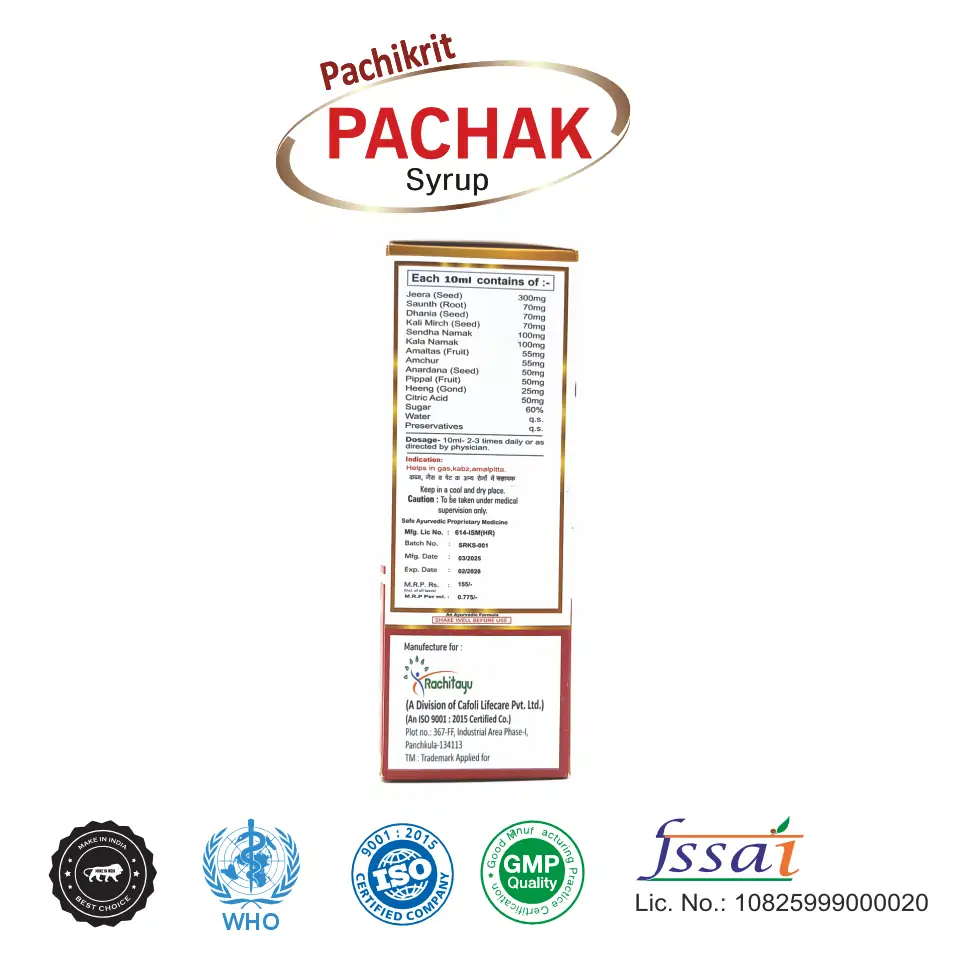 Its all-natural formulation ensures that it is free from harsh chemicals or artificial additives. The syrup has a palatable taste and is easy to administer. Whether taken before meals as a preventive measure or after meals to relieve discomfort, Pachikrit Syrup offers holistic and reliable support for maintaining a healthy digestive system.