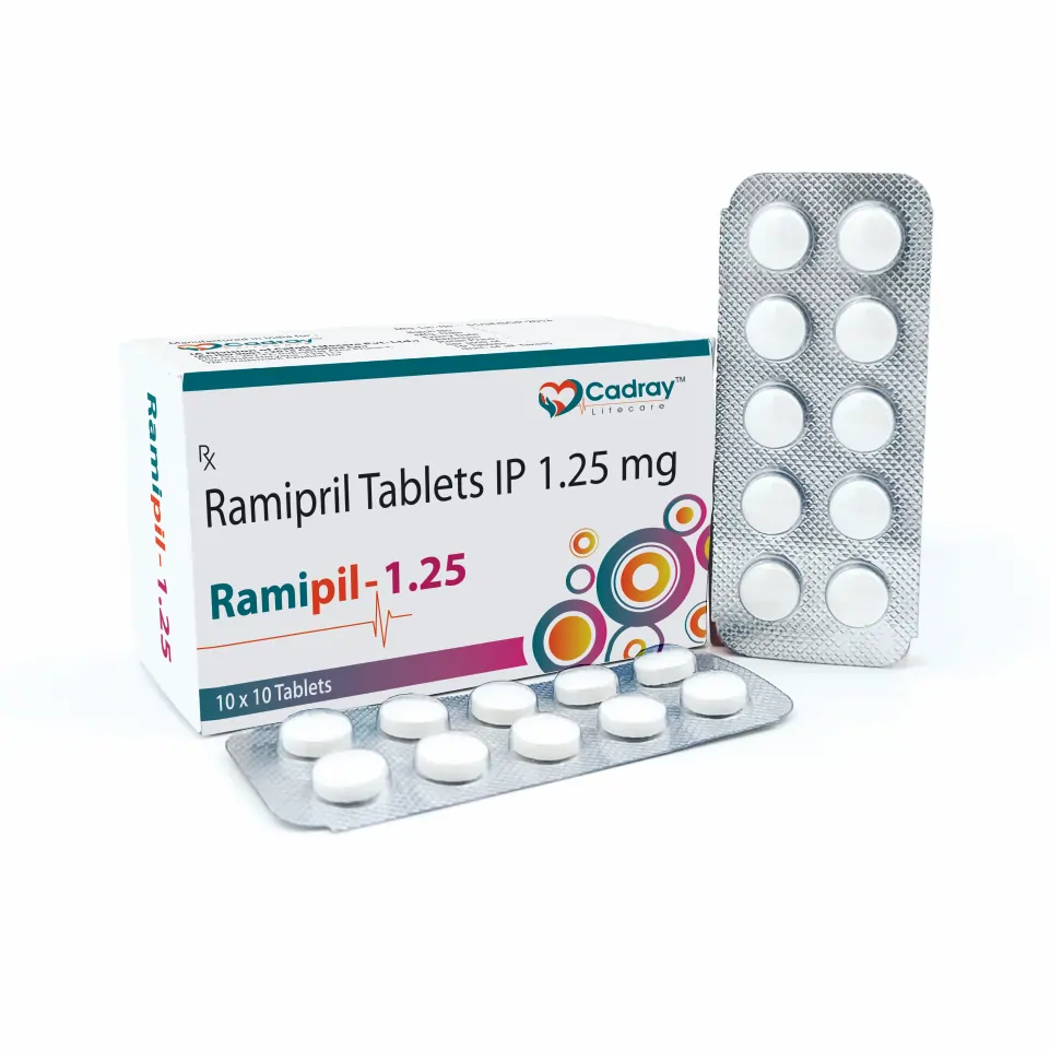 Ramipil 1.25 Tablet contains Ramipril 1.25 mg, an ACE (Angiotensin-Converting Enzyme) inhibitor that helps manage high blood pressure and heart failure and reduces the risk of stroke and heart attack. It works by relaxing blood vessels, lowering blood pressure, and improving blood flow, thereby easing the strain on the heart. It is also used to delay the progression of kidney disease in diabetic patients with hypertension.