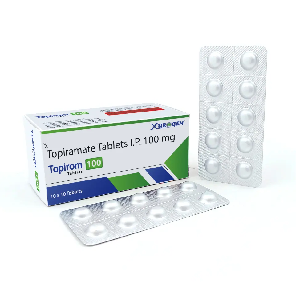 Topirom 100 Tablet contains Topiramate 100mg, a widely used anti-epileptic medication effective for managing partial seizures, generalized tonic-clonic seizures, and migraine prophylaxis. It works by stabilizing neuronal activity and reducing excessive electrical impulses in the brain, helping prevent seizure episodes.