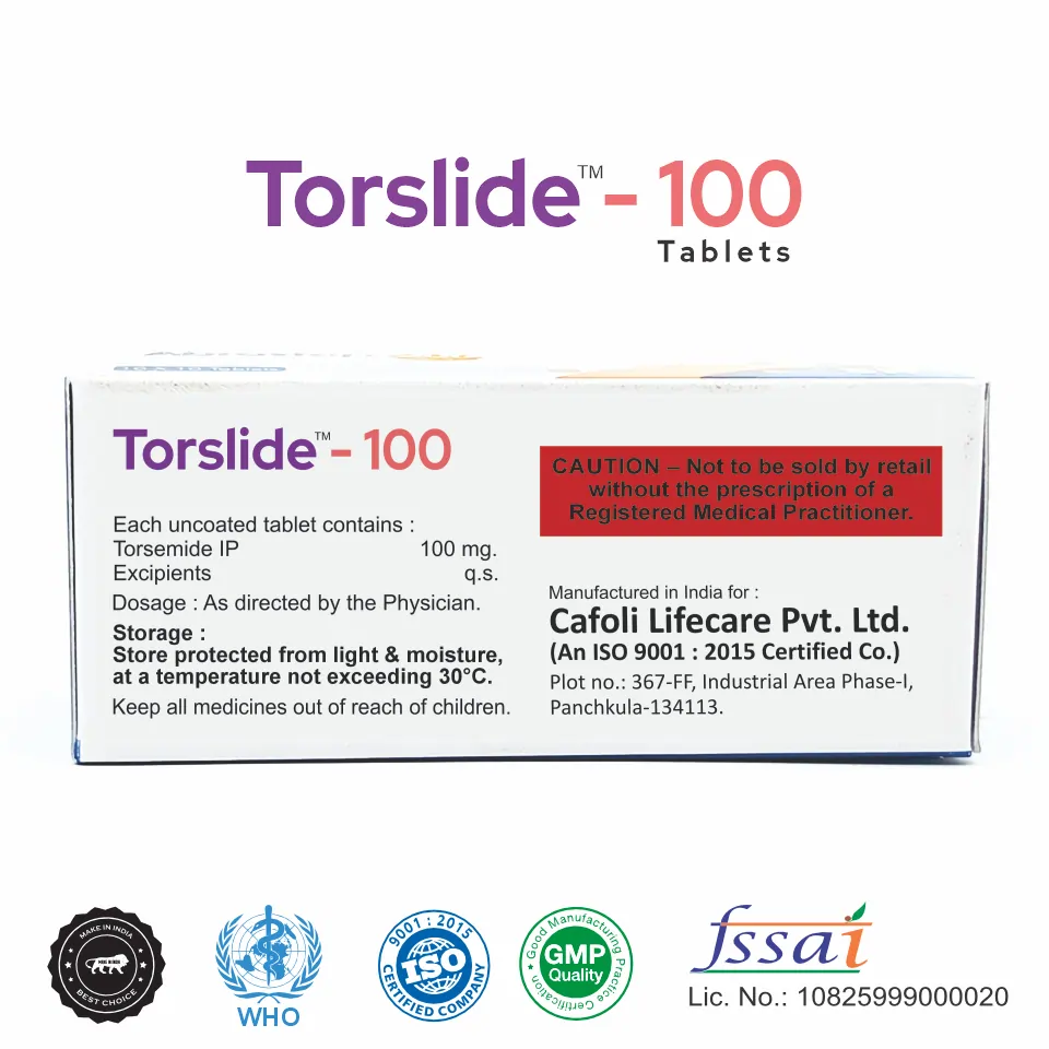 Torslide 100 Tablet is often recommended for patients who require potent diuresis and need long-term management of heart failure or kidney disorders. It plays a crucial role in preventing complications associated with fluid retention, such as pulmonary edema (fluid in the lungs), high blood pressure, and electrolyte imbalances.
