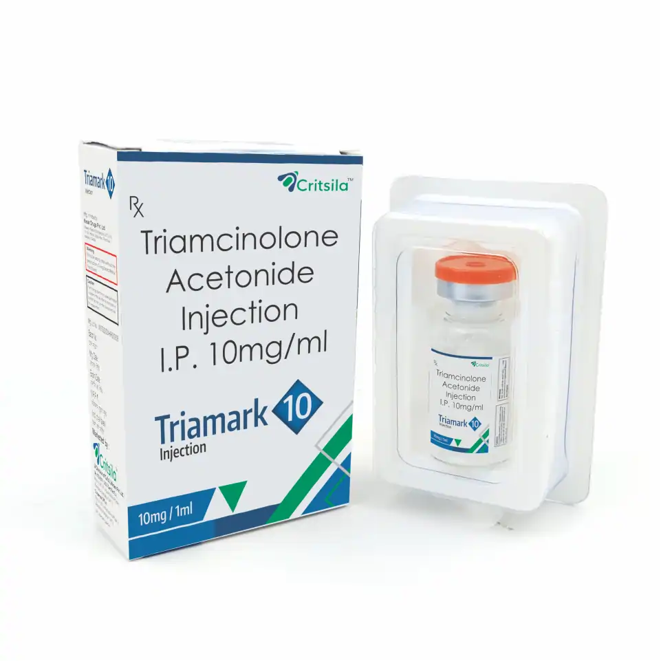 Triamark 10 Injection contains Triamcinolone Acetonide 10mg, a corticosteroid used for the management of inflammatory disorders, allergic reactions, and autoimmune conditions. It helps in reducing swelling, redness, and pain in acute and chronic cases.